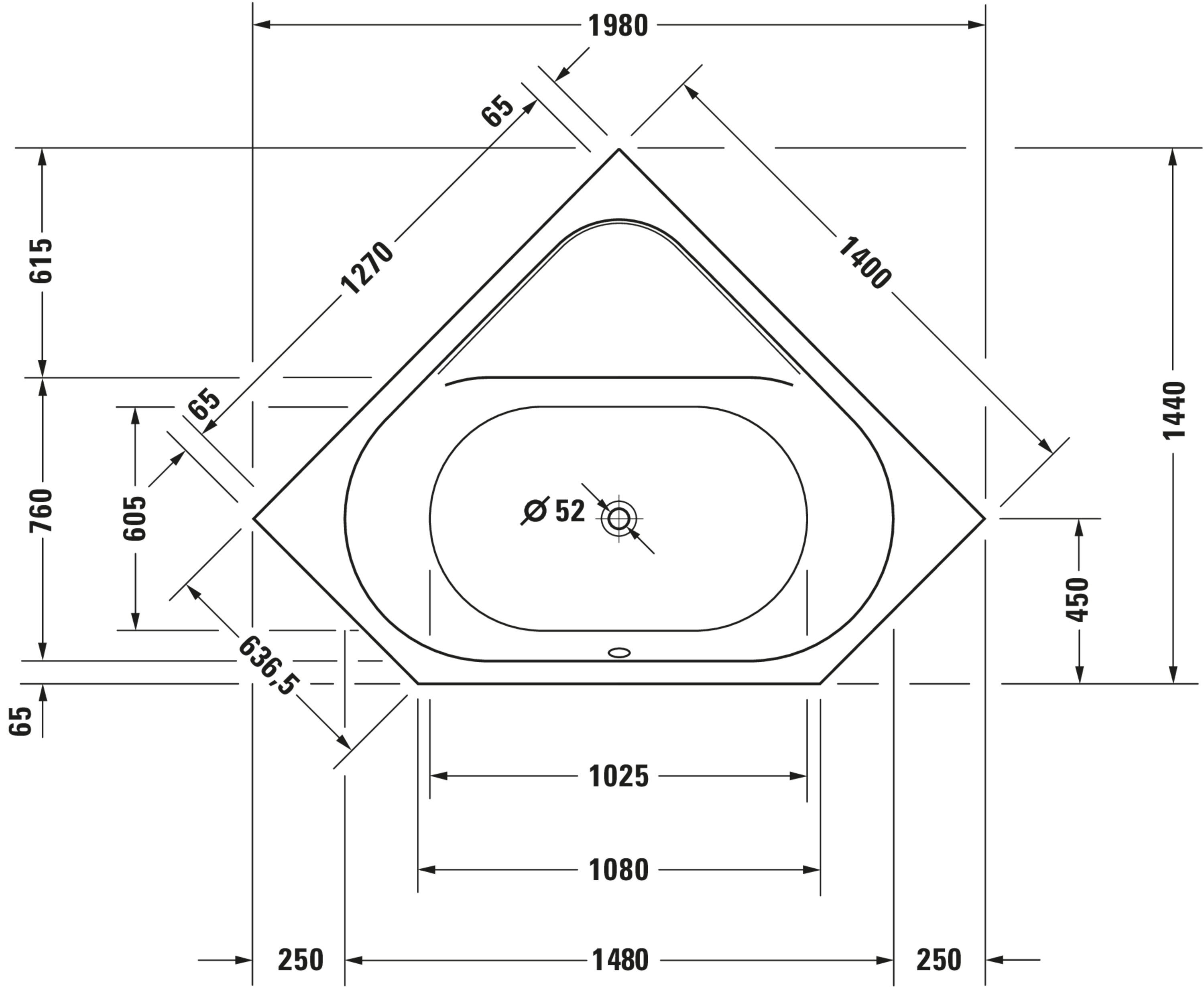 Whirlbad D-Code 1400x1400mm wit wit, versie ANGLE, Jet Proje Duravit