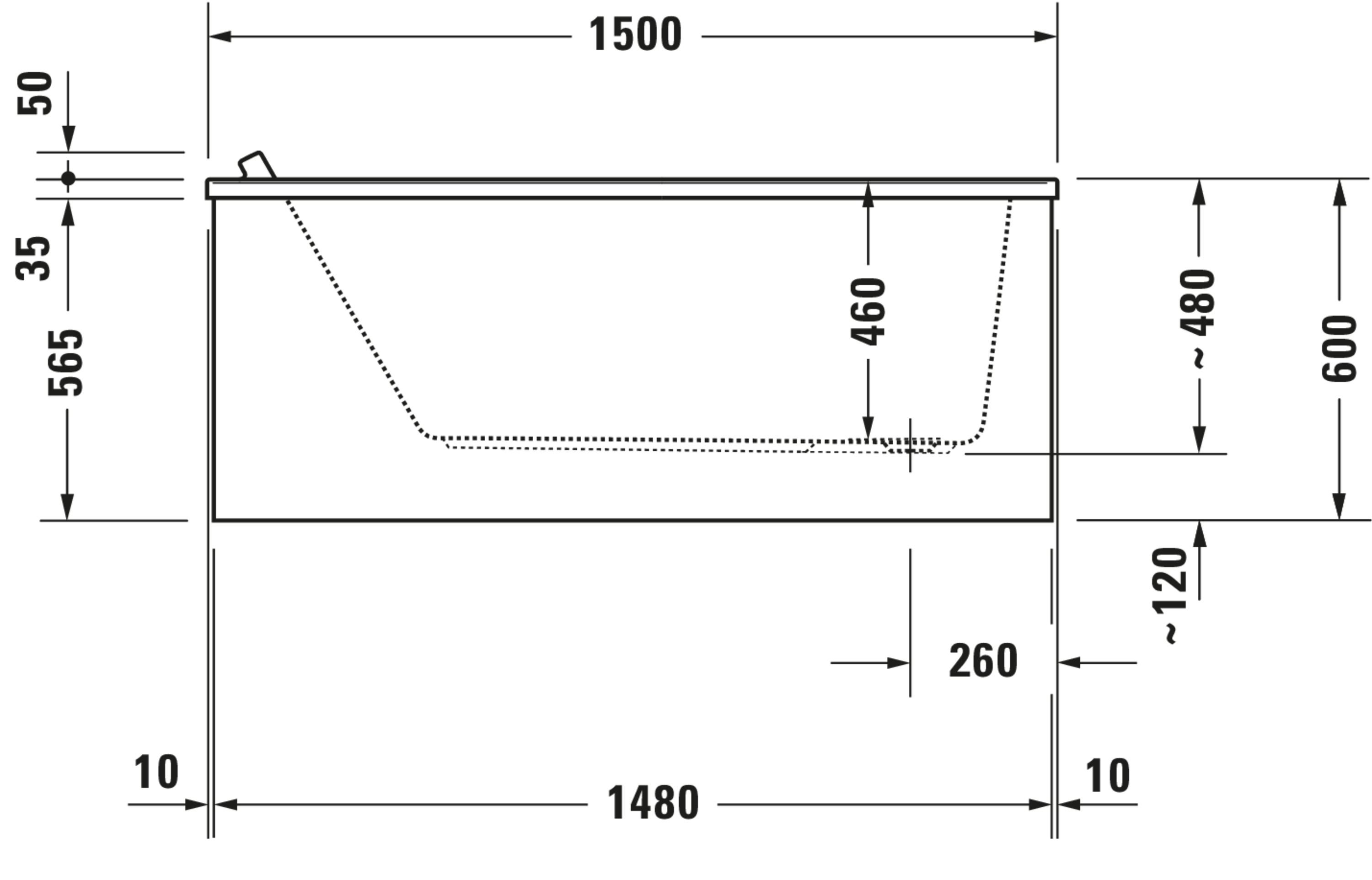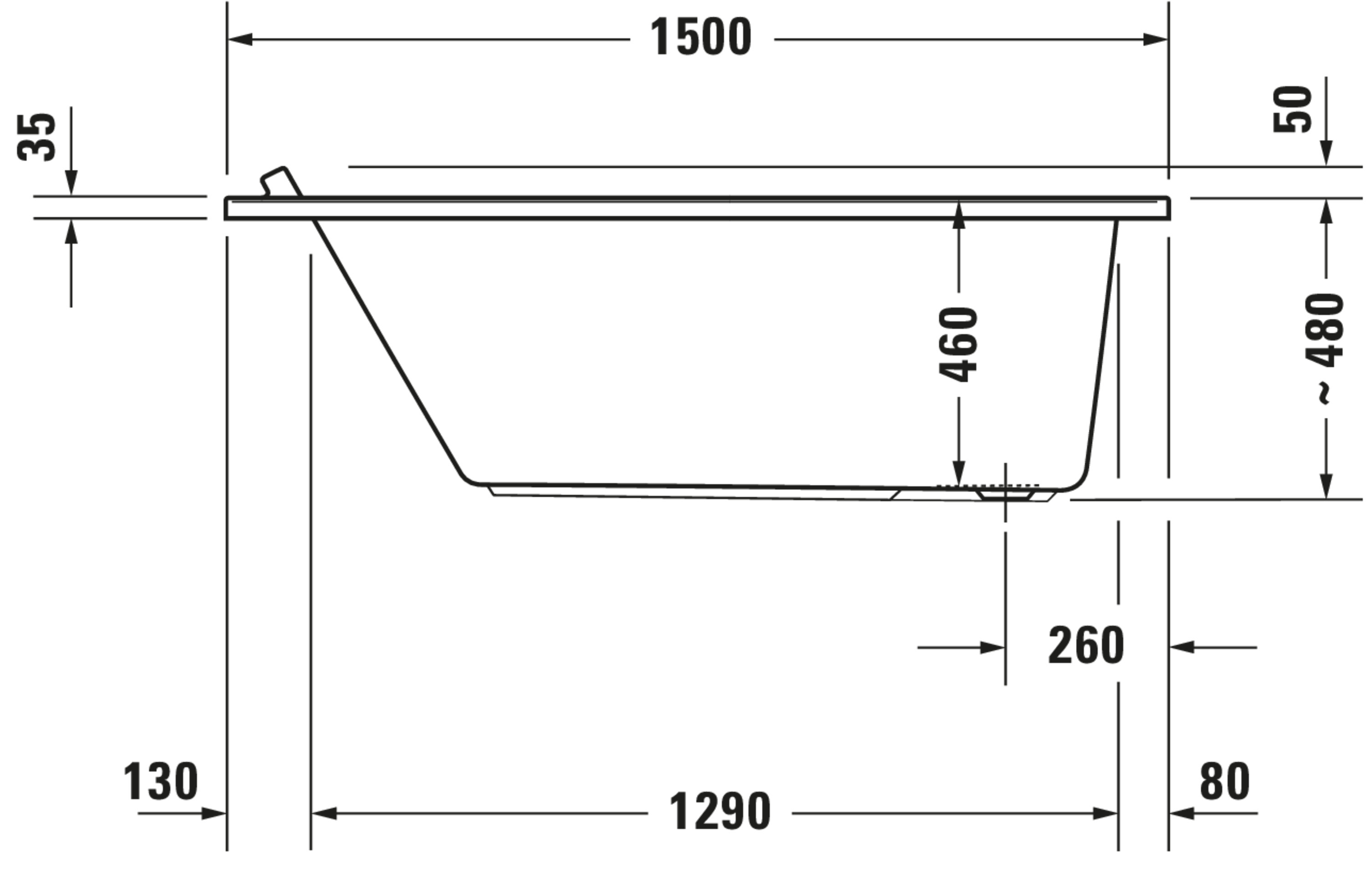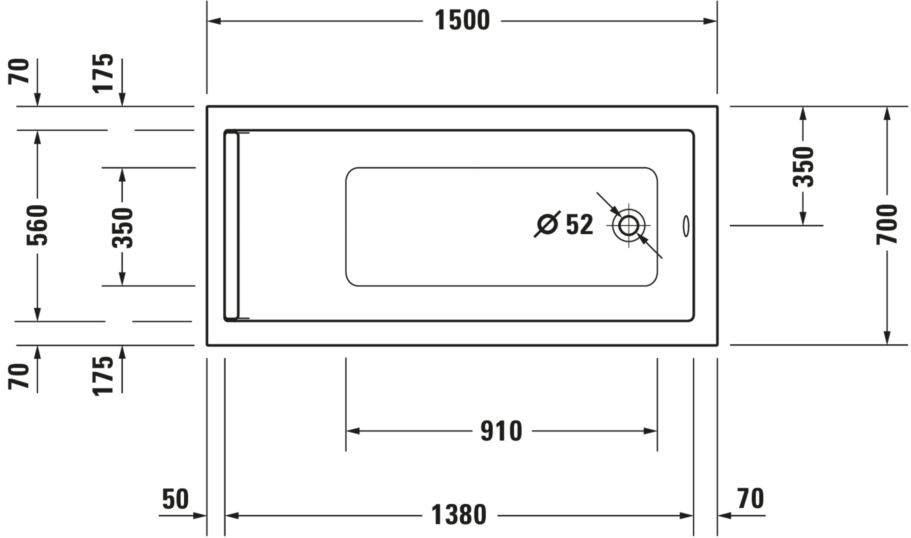 DU whirlbad Starck 1500x700mm, wit inbouw, Syst. Air Duravit