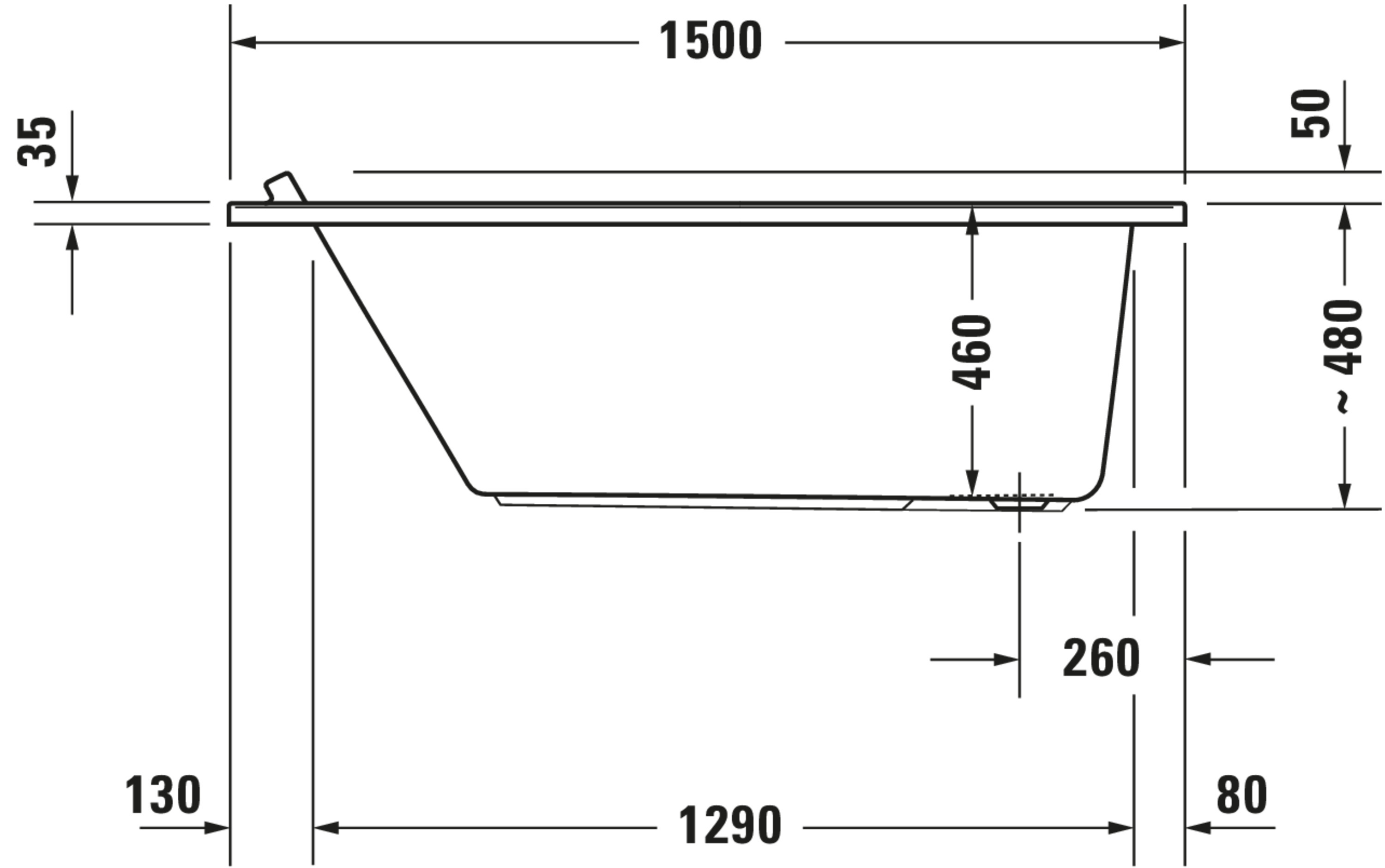 DU whirlbad Starck 1500x750mm, wit inbouw, Syst. Air Duravit