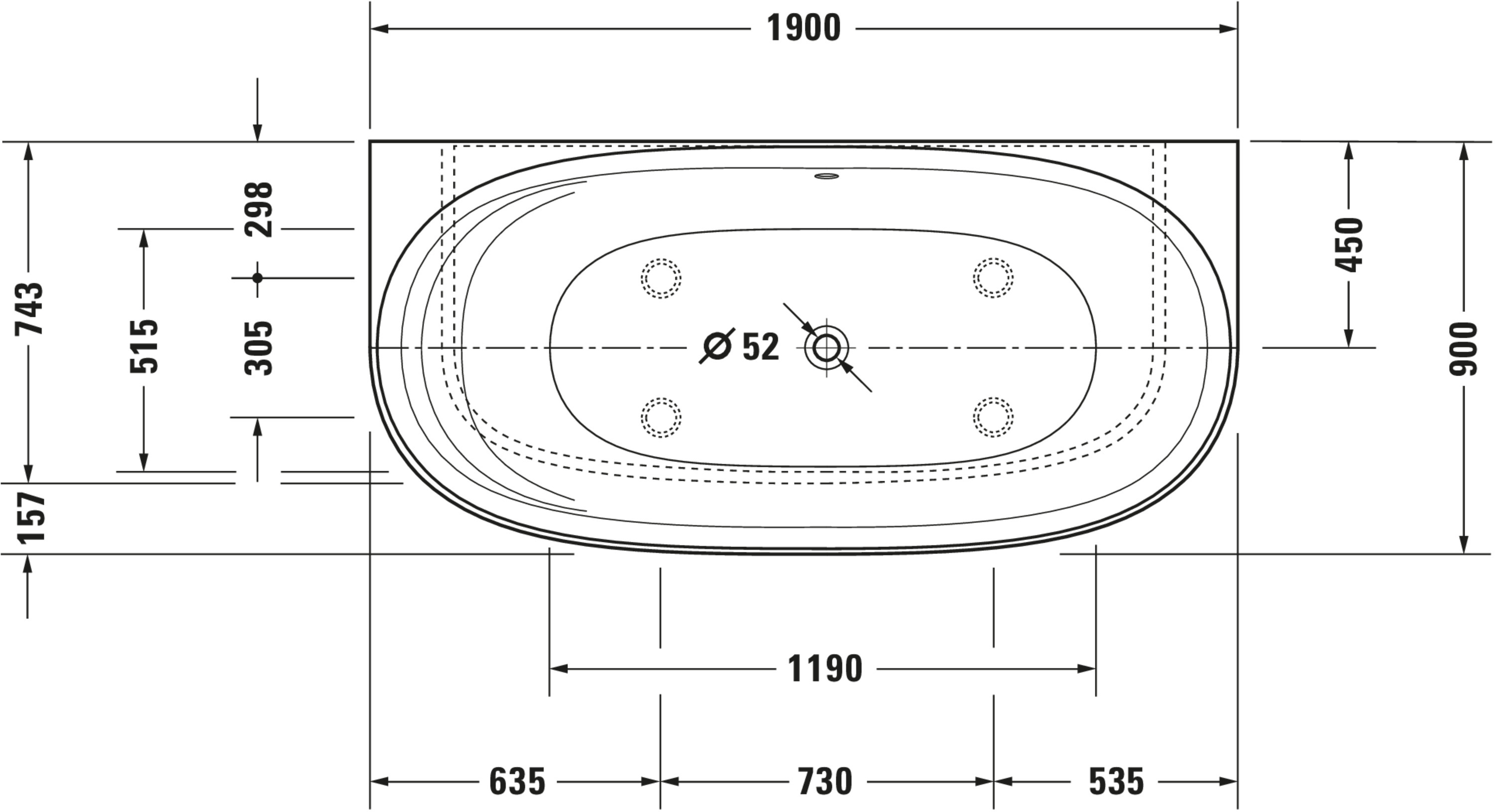 Cape Cod Whirlbad Wit Mat 1900x900x510mm 760364000AS0000 Duravit