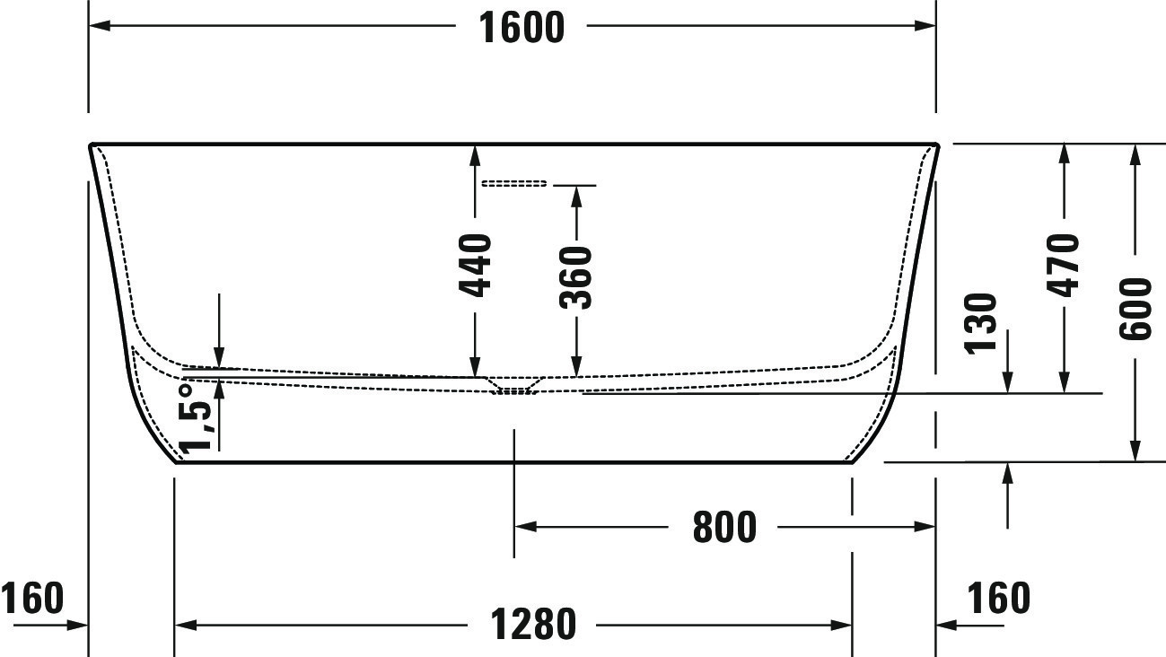 Soleil by Starck #700516 Bad wit Mat 160x80cm ovaal 2 rugsteunen incl. poten + afvoergarnituur Duravit