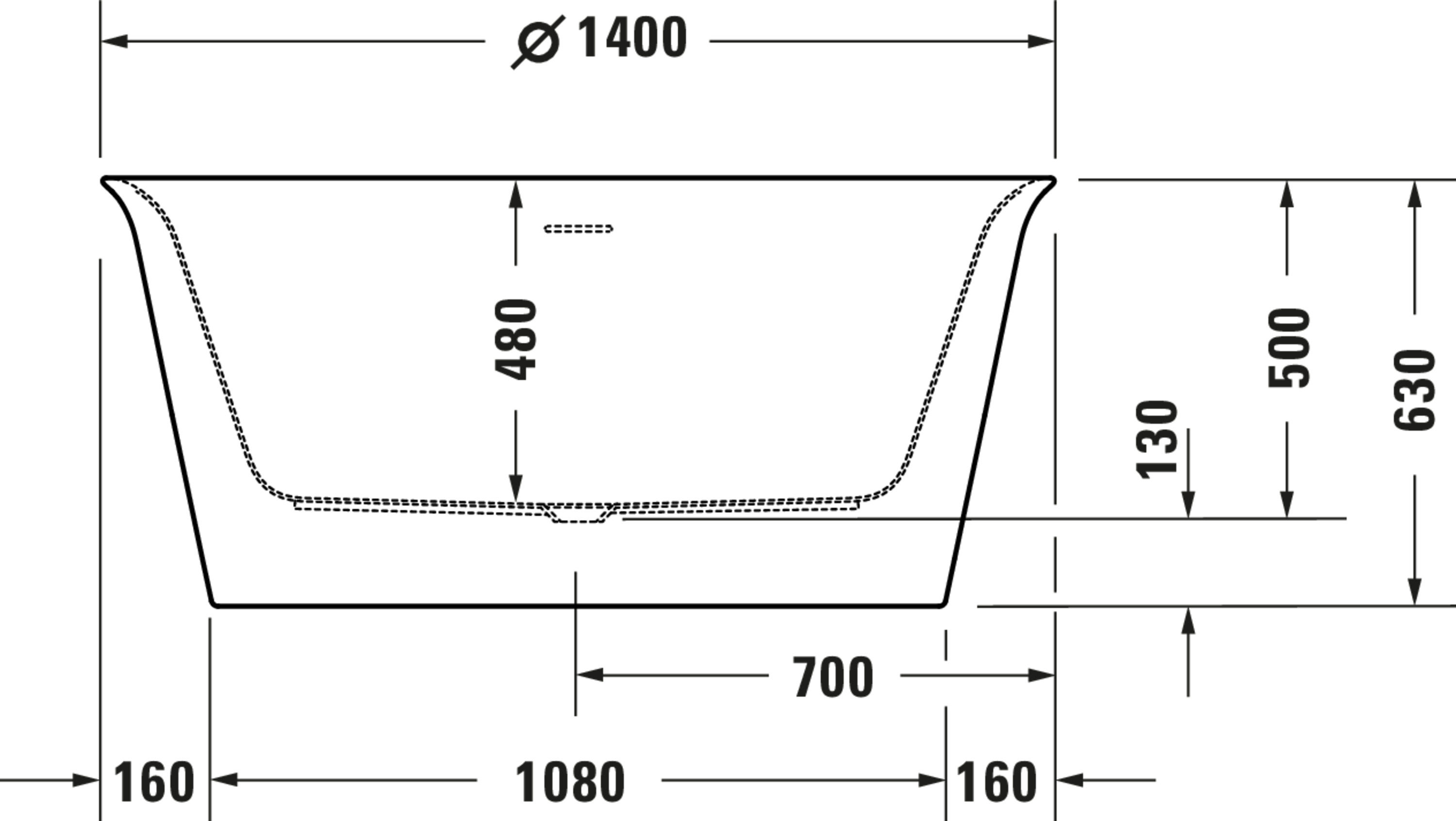 - Diepte (inwendig tot overloop): 400 mm