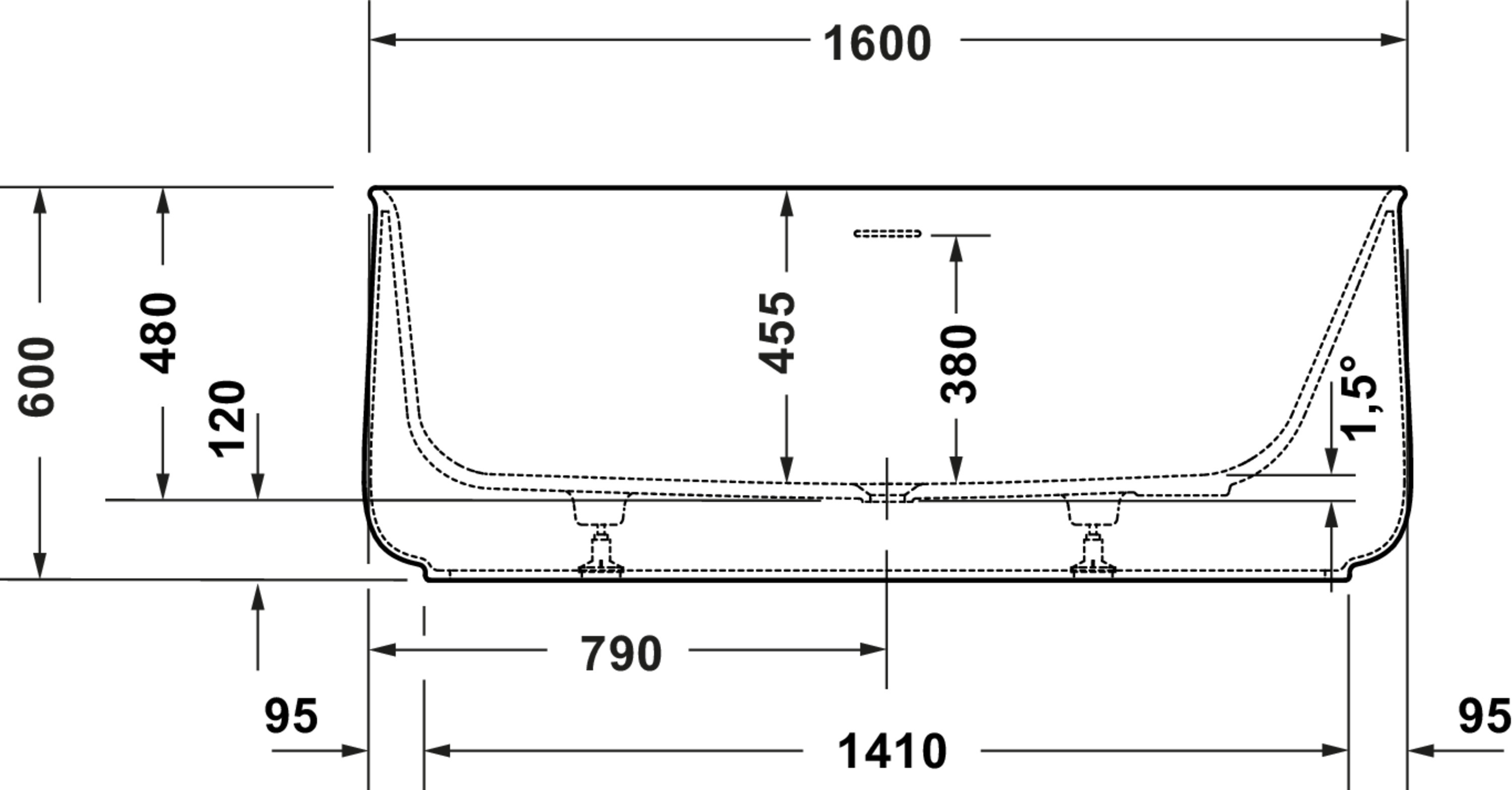 Zencha #700462 ligbad wit Mat 160x85cm incl. poten + afvoergarnituur Duravit