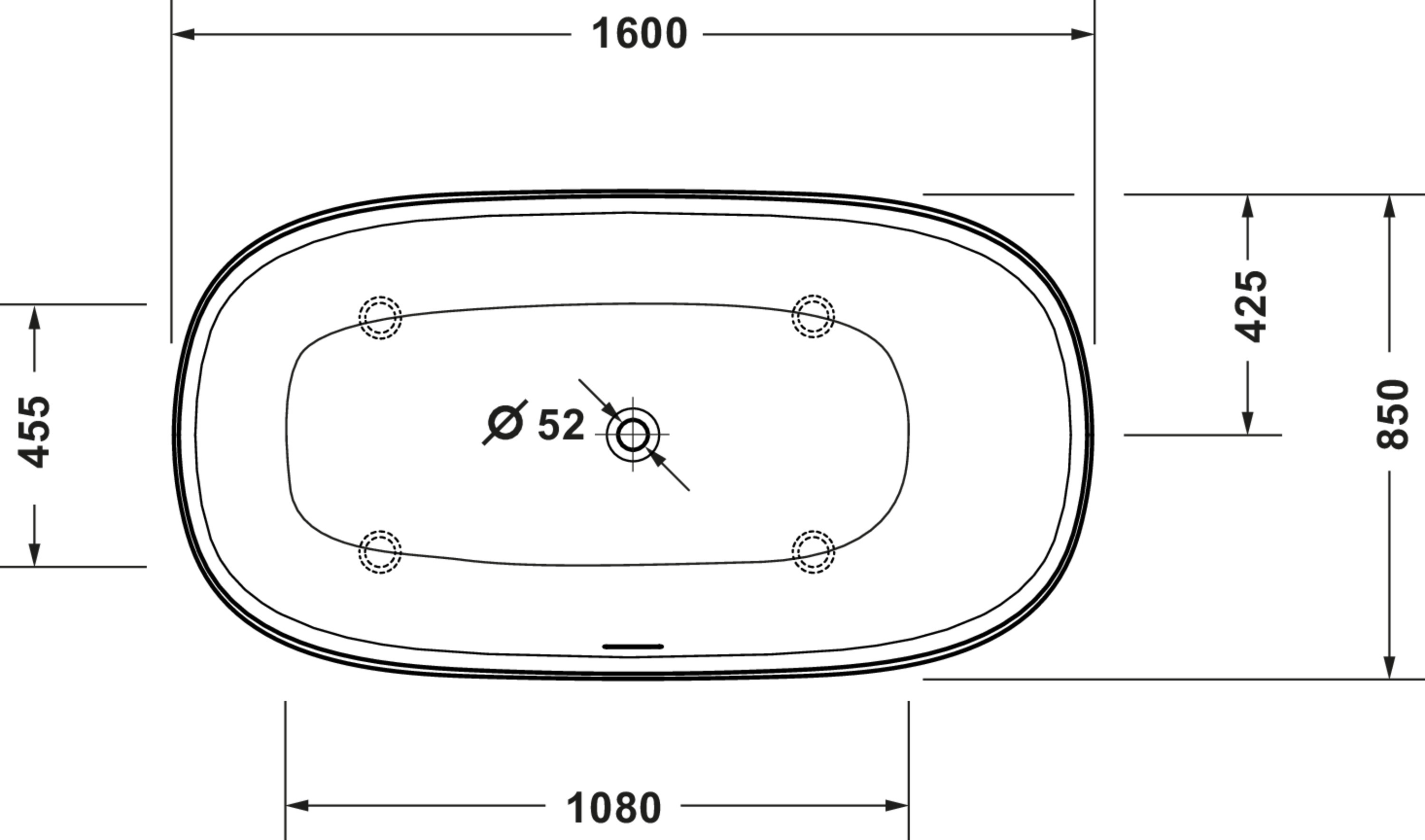 - Plaats afvoergat: Midden