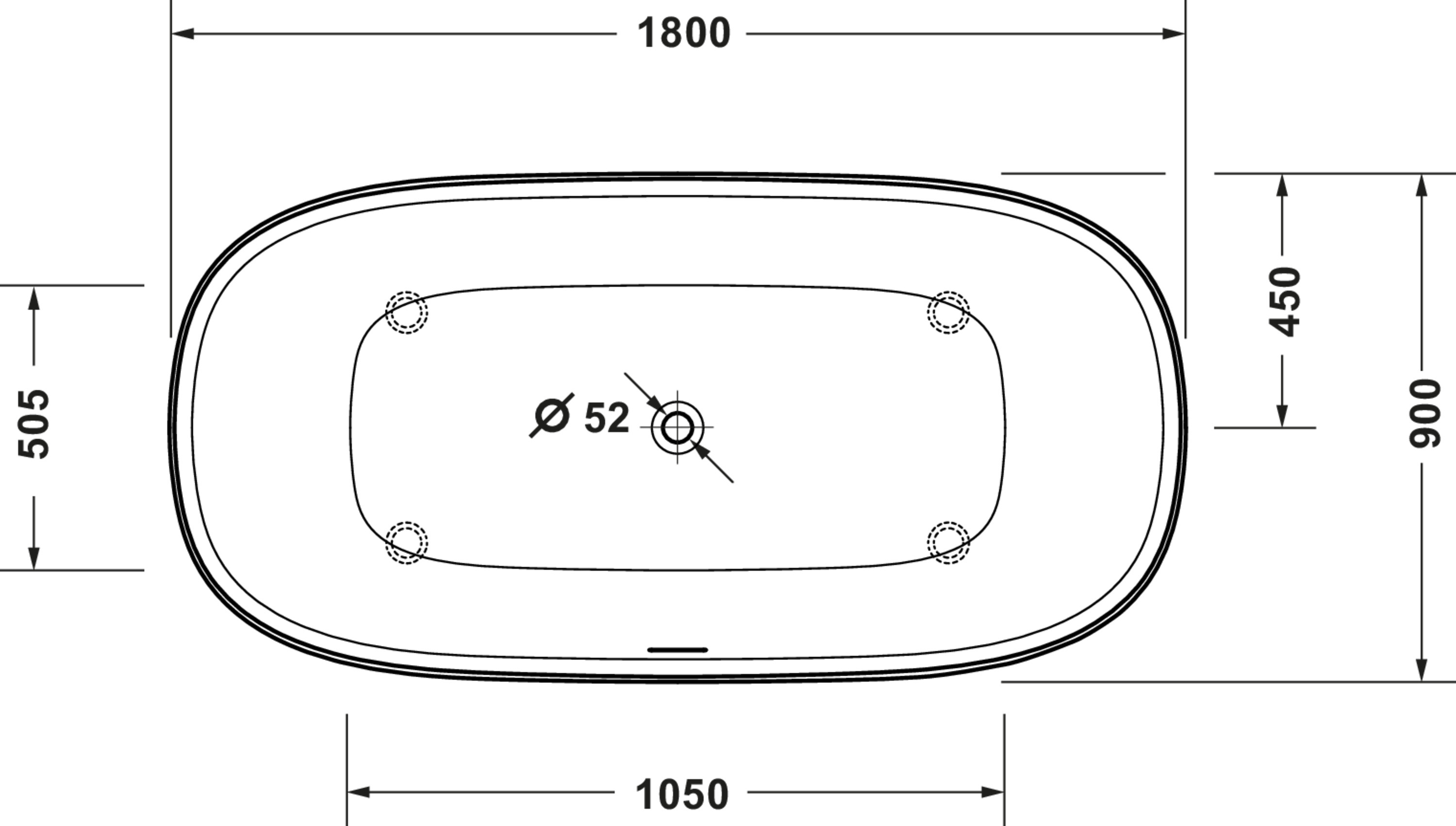 Zencha #700463 ligbad wit Mat 180x90cm incl. poten + afvoergarnituur Duravit