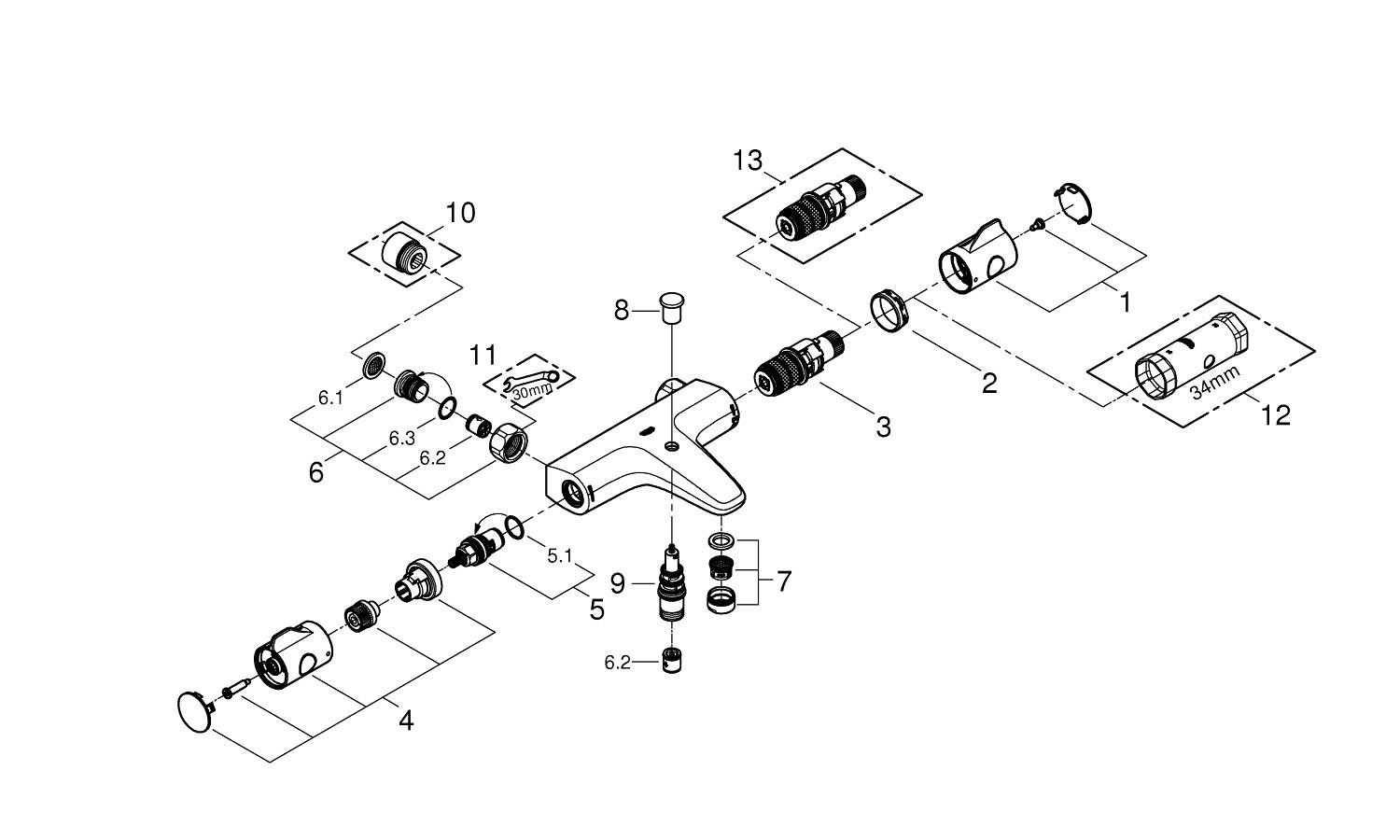 Grohtherm 800 badthermostaat 150mm Matte Black (mat zwart) excl. S-koppelingen (prof) Grohe