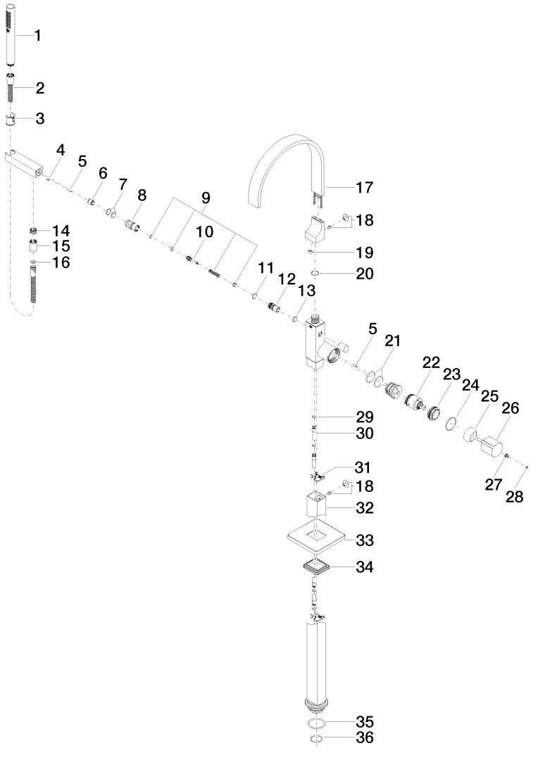 MEM Eengr.badmngkrn,standpijp vrijsta montage douchegarn-BG Dornbracht