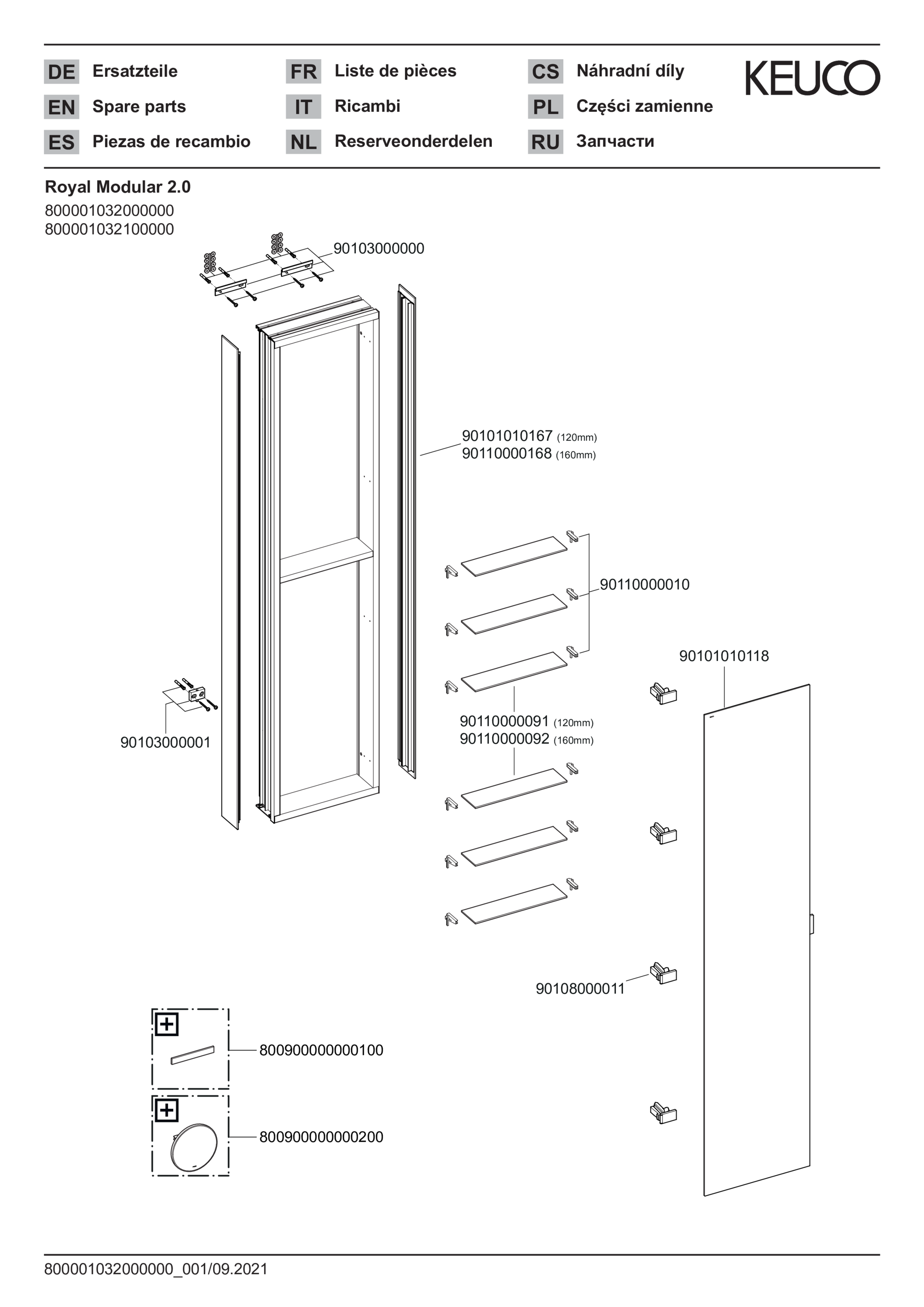 Anbouwkast,onverl.,scharni. l. Wandvoorbouw 800001032100000 KEUCO
