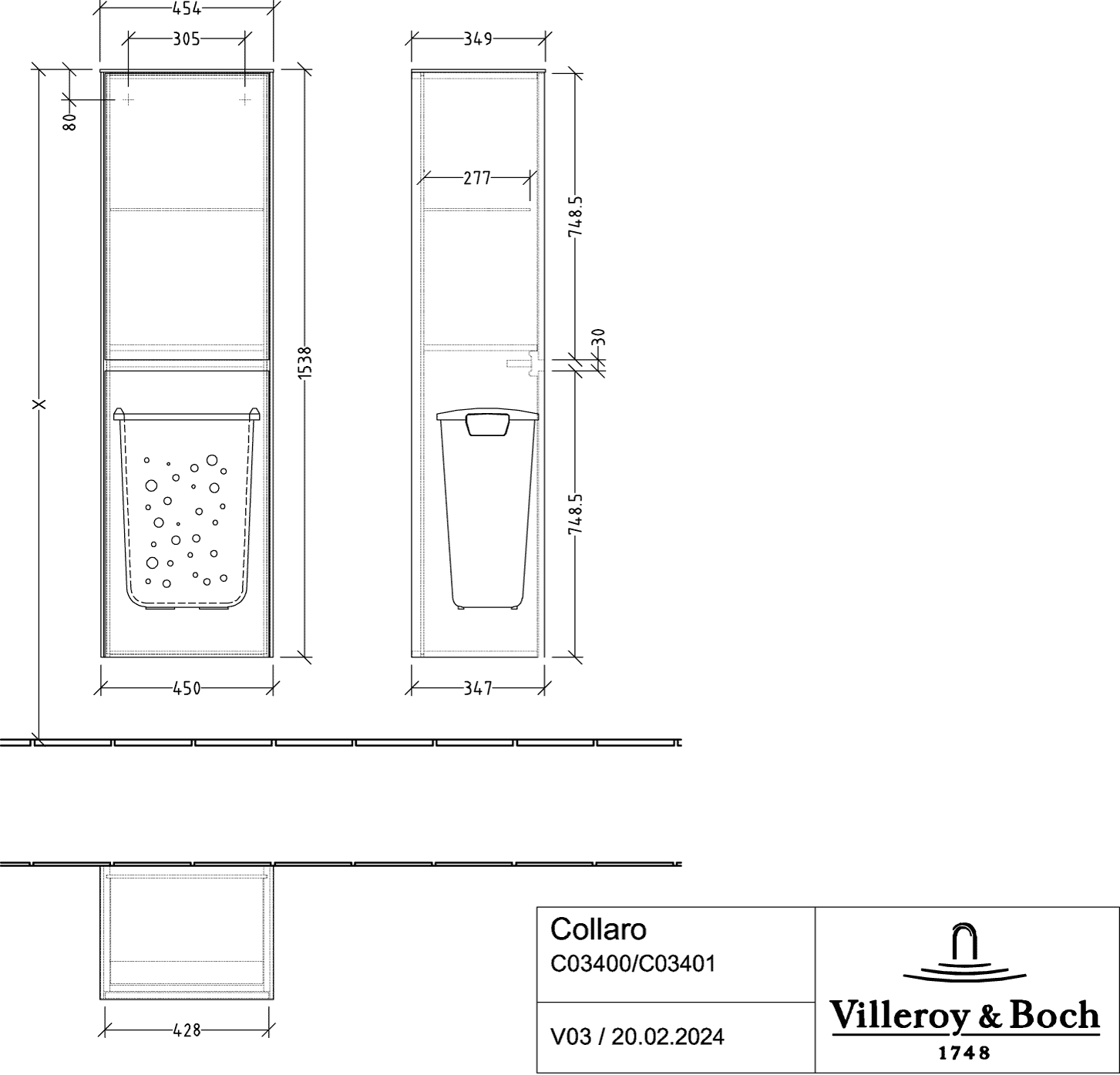 Hoge kast Collaro 454 x 1538 x 349 mm Oak Kansas C03400RH Villeroy & Boch