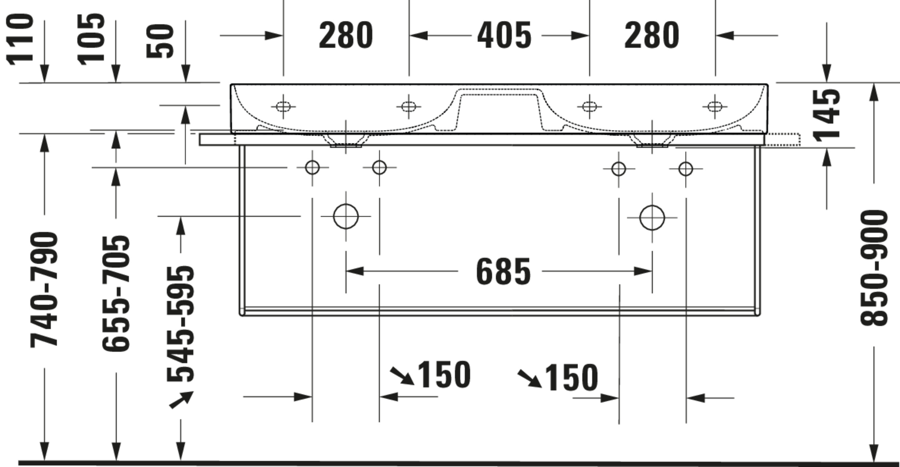 DuraSquare Met.Console hang 1265x451x400mm Zwart mat