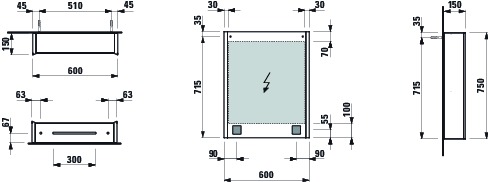 Toiletkast 600x150mm led 2-zijdige spiegeldeur l zijkant wit Laufen