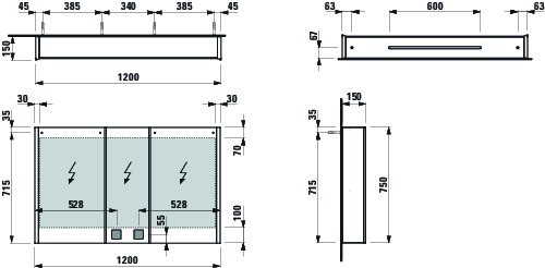 Toiletkast 1200x150mm met led verlichting zijkant wit Laufen
