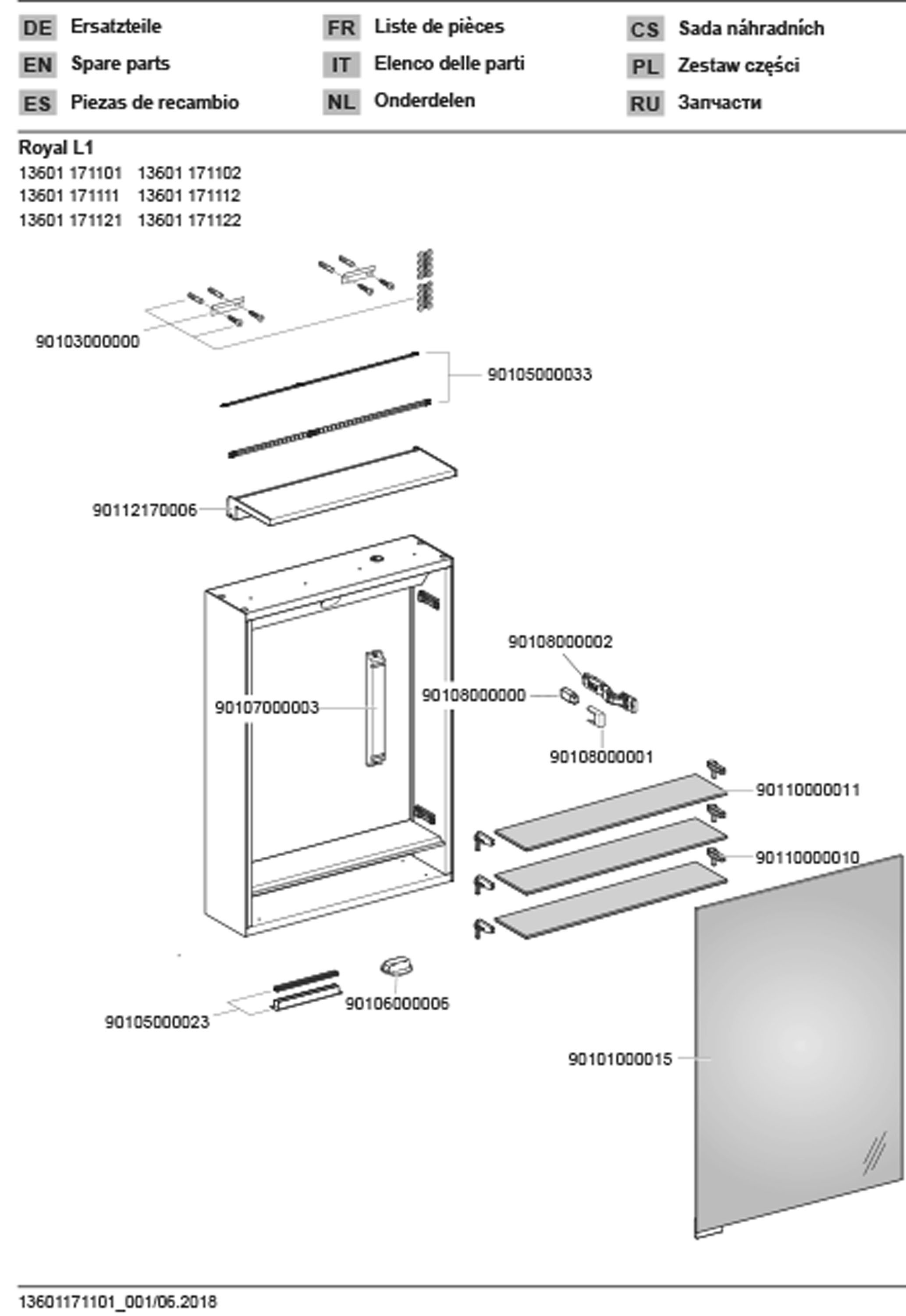 Spiegelk. Royal L1 aanslag rechts m. schuiflad+ 13601171102 KEUCO