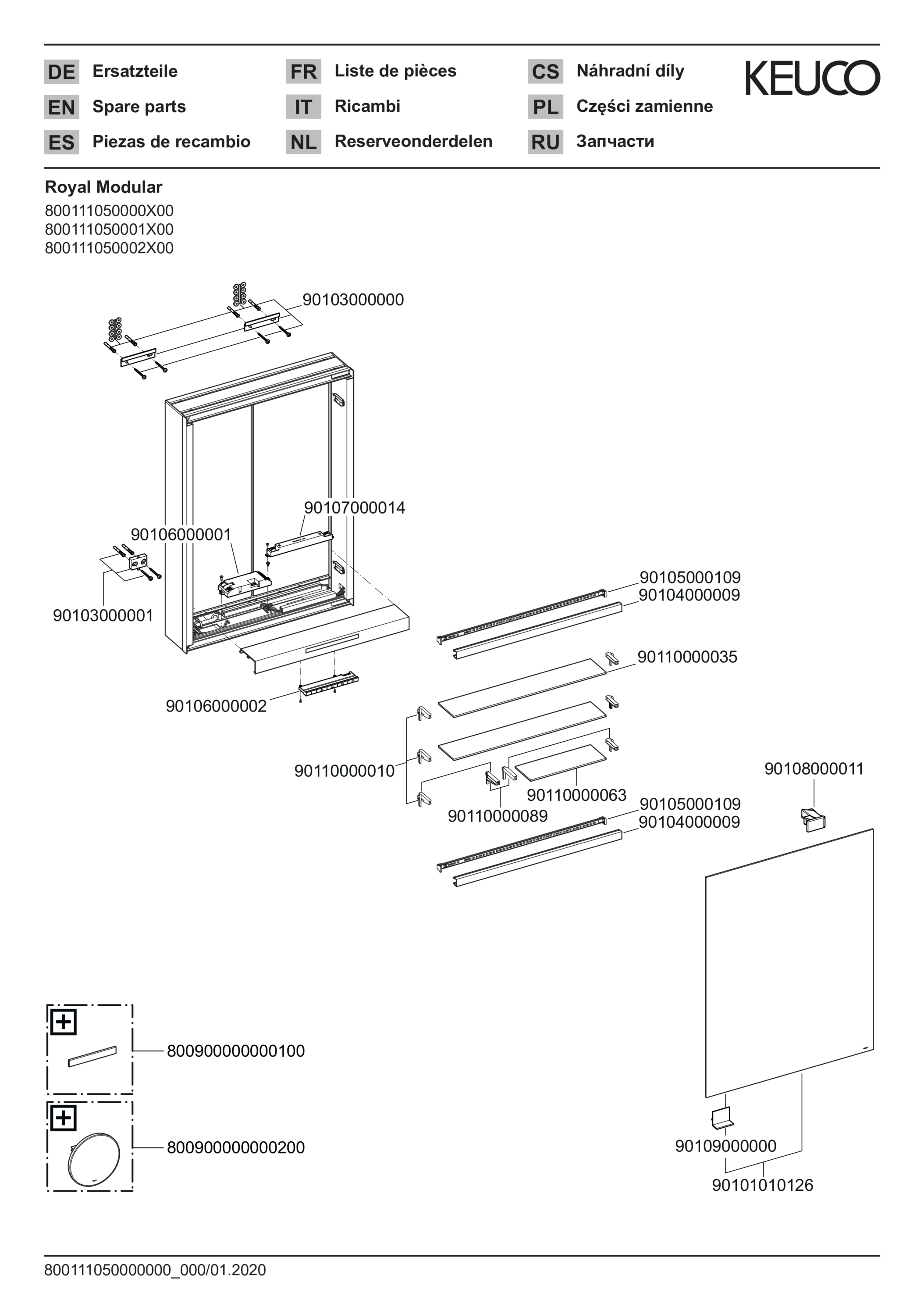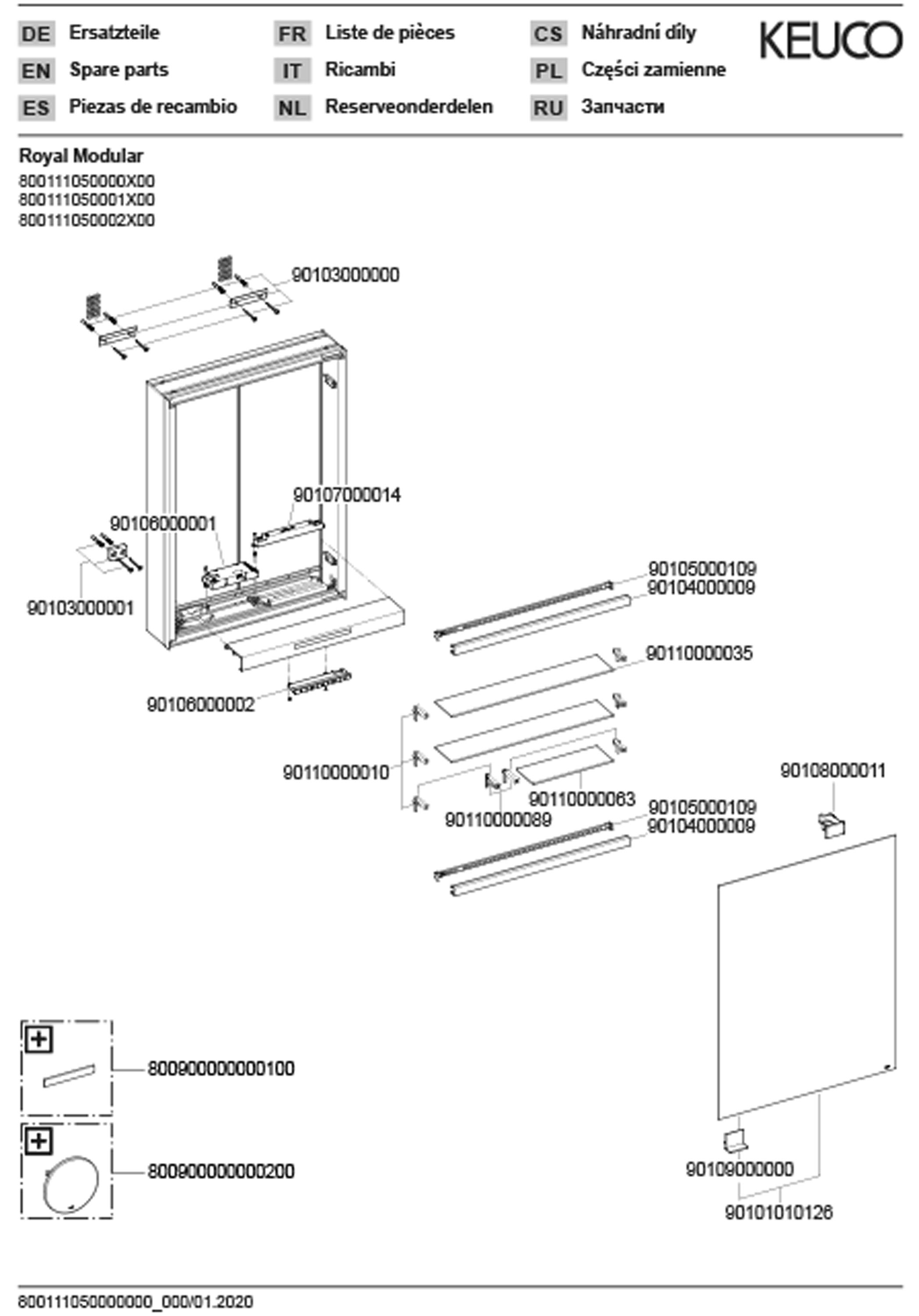 Spiegelkast, verl. wandtbvbouw,1 stopcontact 800111050000100 KEUCO