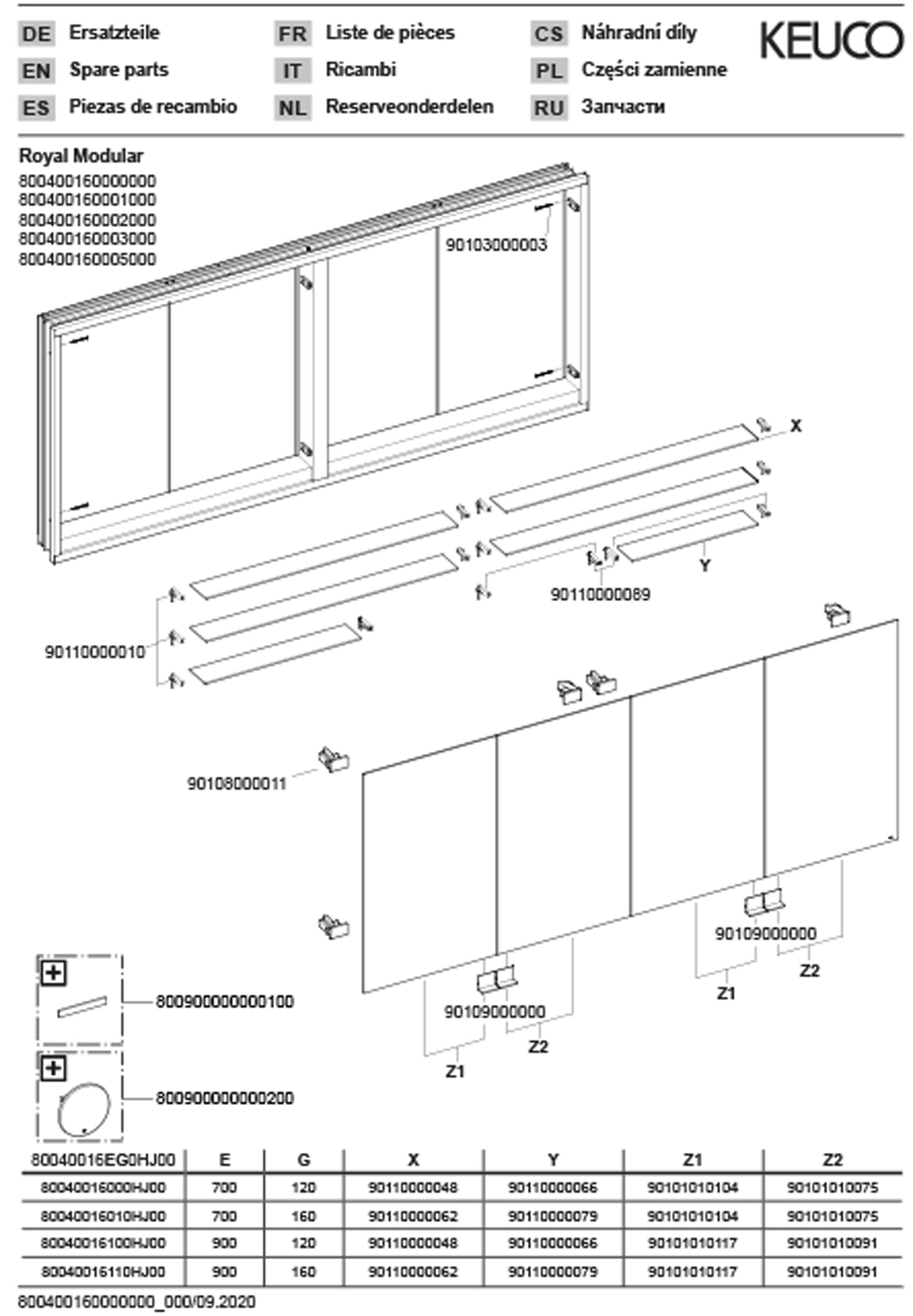 Spiegelk. onverl. wandinb.2 stopco.+ 2 USBs 800400160000500 KEUCO