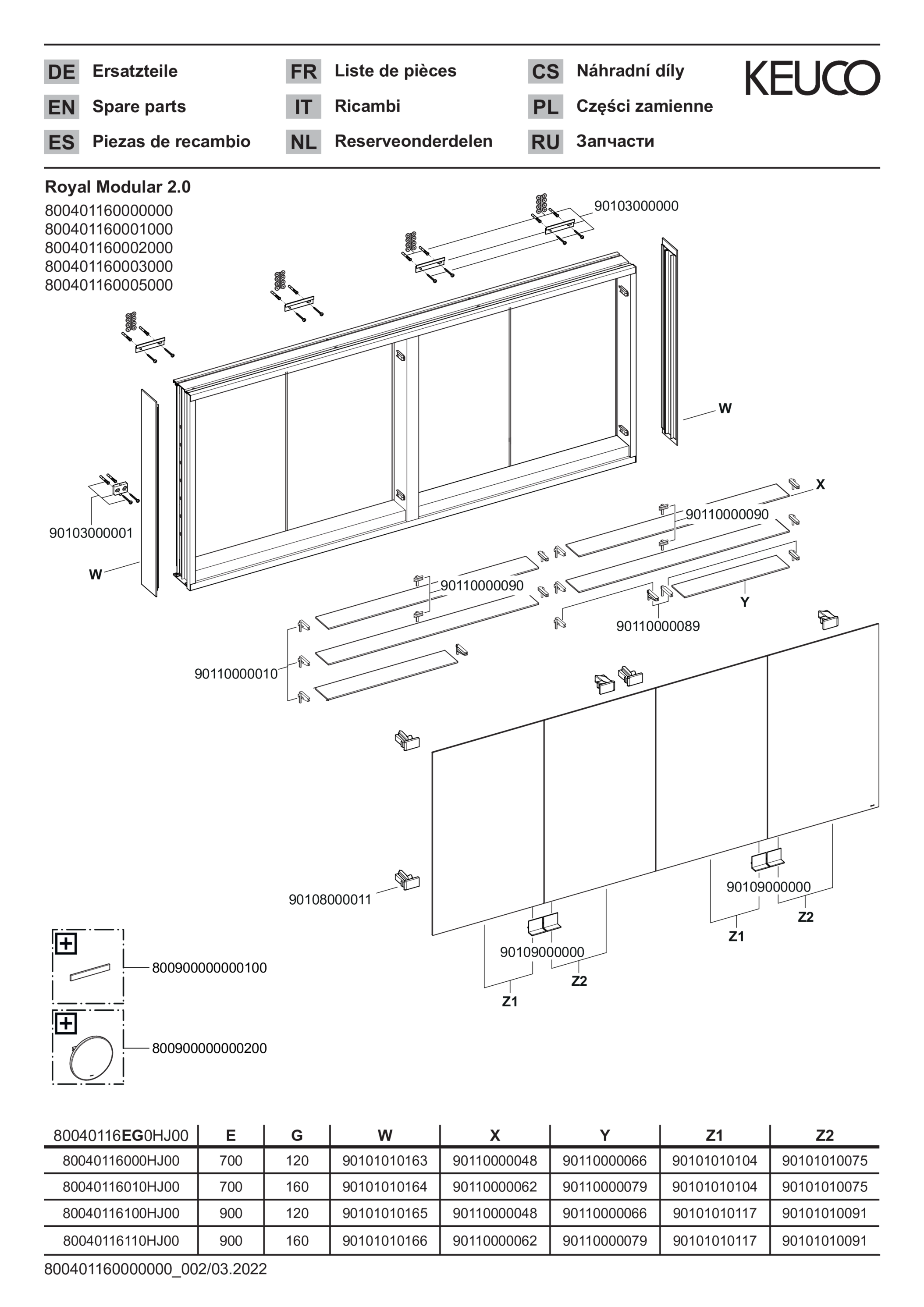Spiegelk onverl wandtbvb2 stopco+ 2 USBs 800401161100500 KEUCO