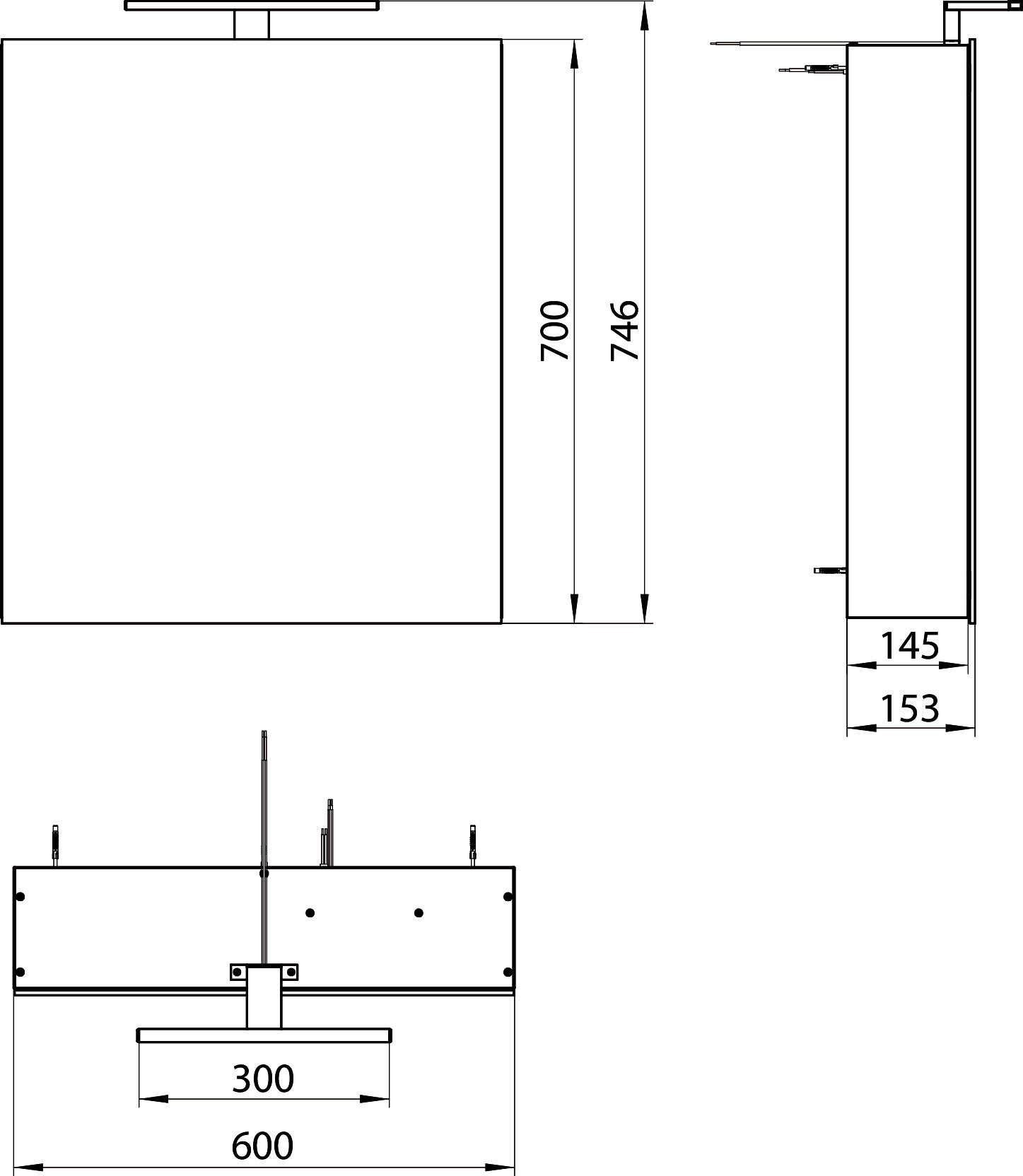 Spiegelkast MEE 600mm 1 deur H=700/746mm incl. opbouw LED-lamp EMCO