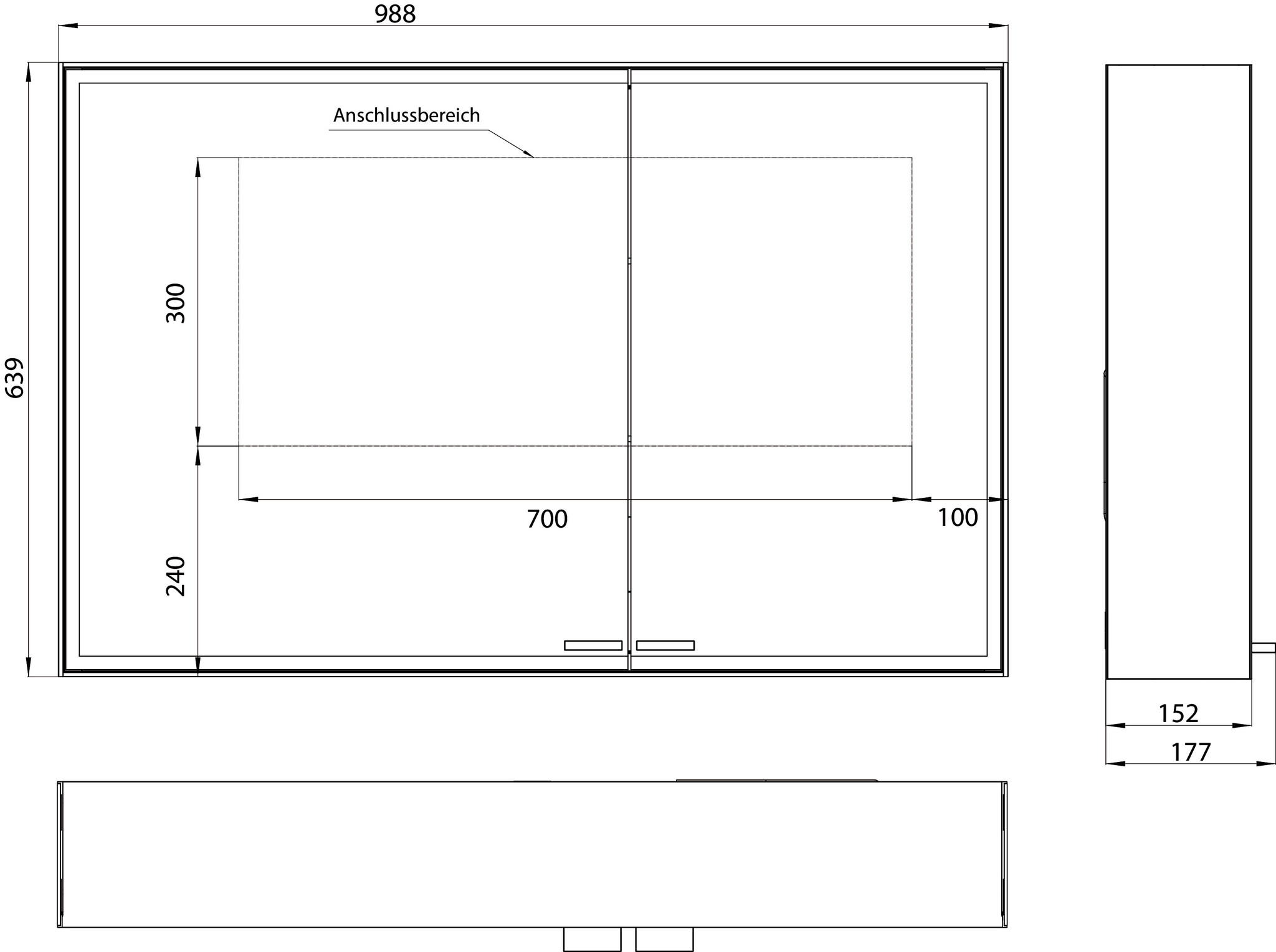 Led-spiegelkast Prestige2 opbouw 2 deuren (brede deur links) zonder Emco light system 987mm EMCO