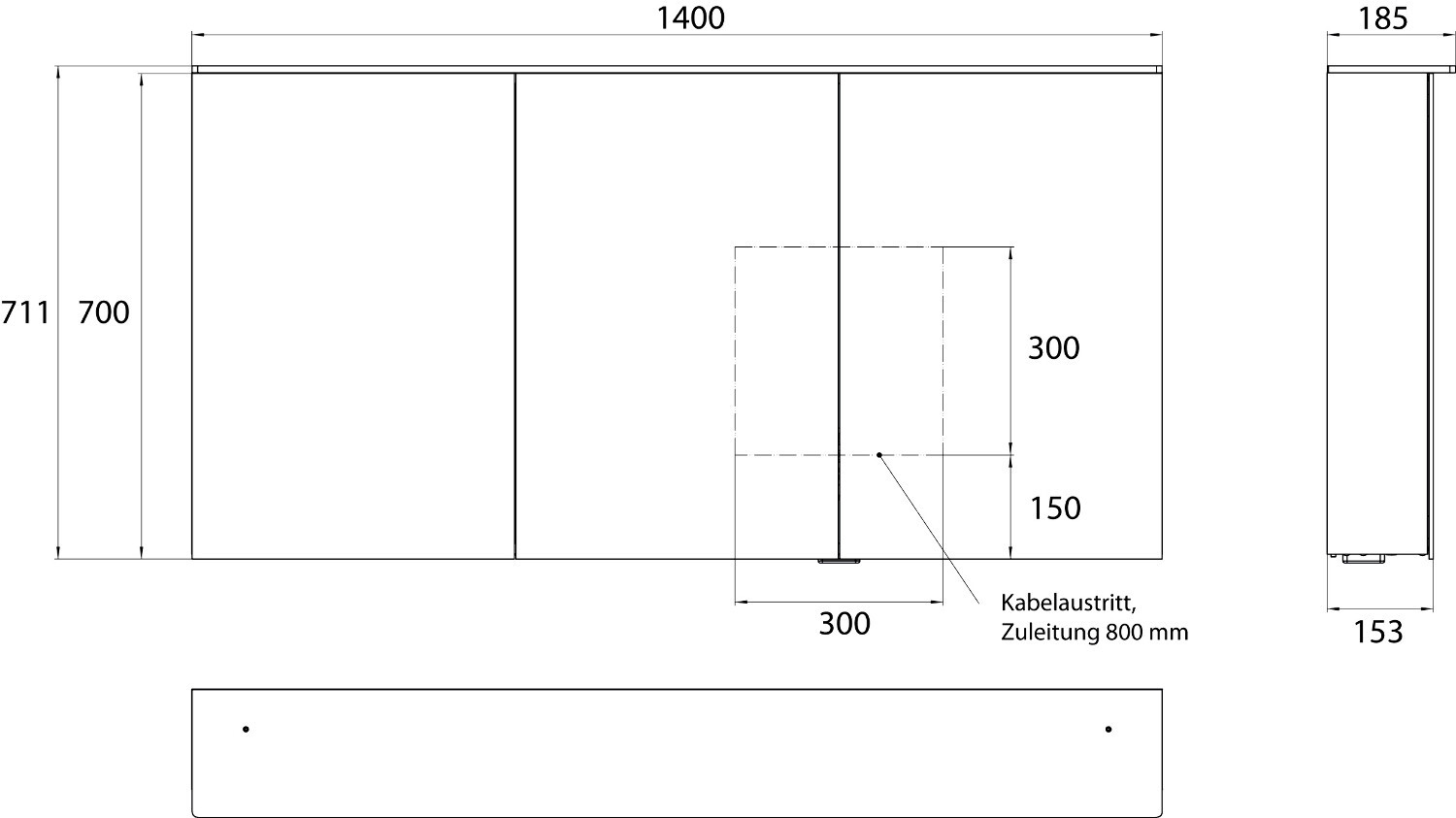 Led-spiegelkast Pure-2 Design 1400mm aluminium opbouw 3 deuren H=711mm EMCO