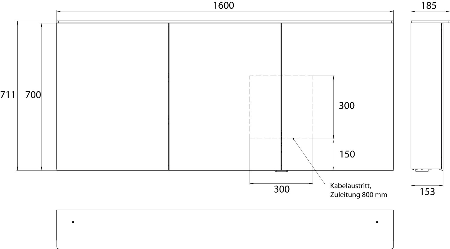 Led-spiegelkast Pure-2 Design 1600mm aluminium opbouw 3 deuren H=711mm EMCO
