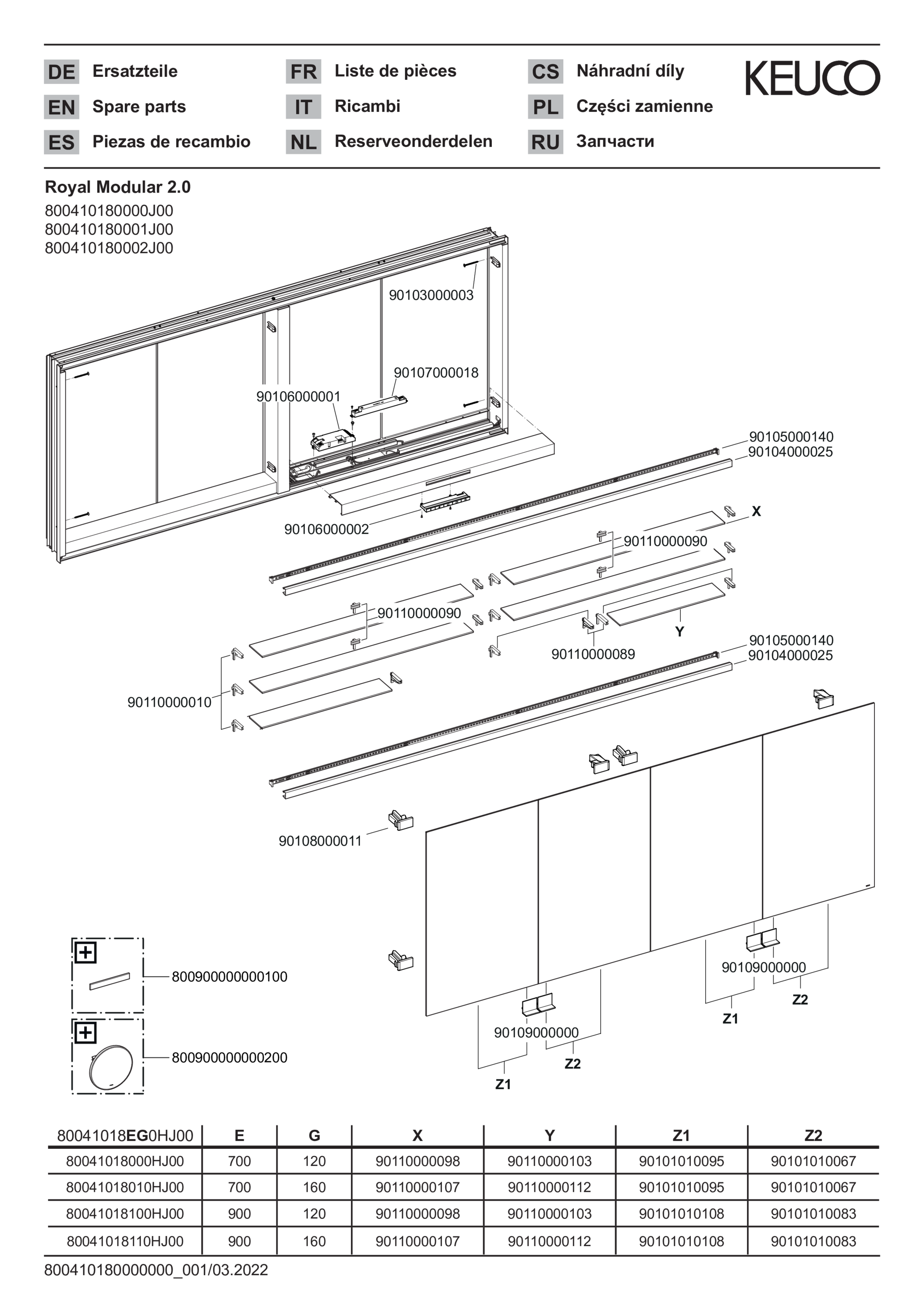 Spiegelkast verlicht wandinb. 1800x700x120mm 800410180000000 KEUCO