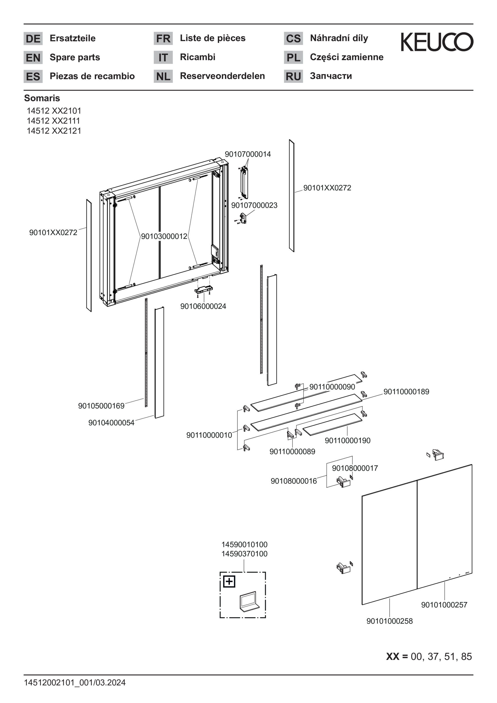 Spiegelkast Somaris 875x1070x270mm 14512372101 KEUCO