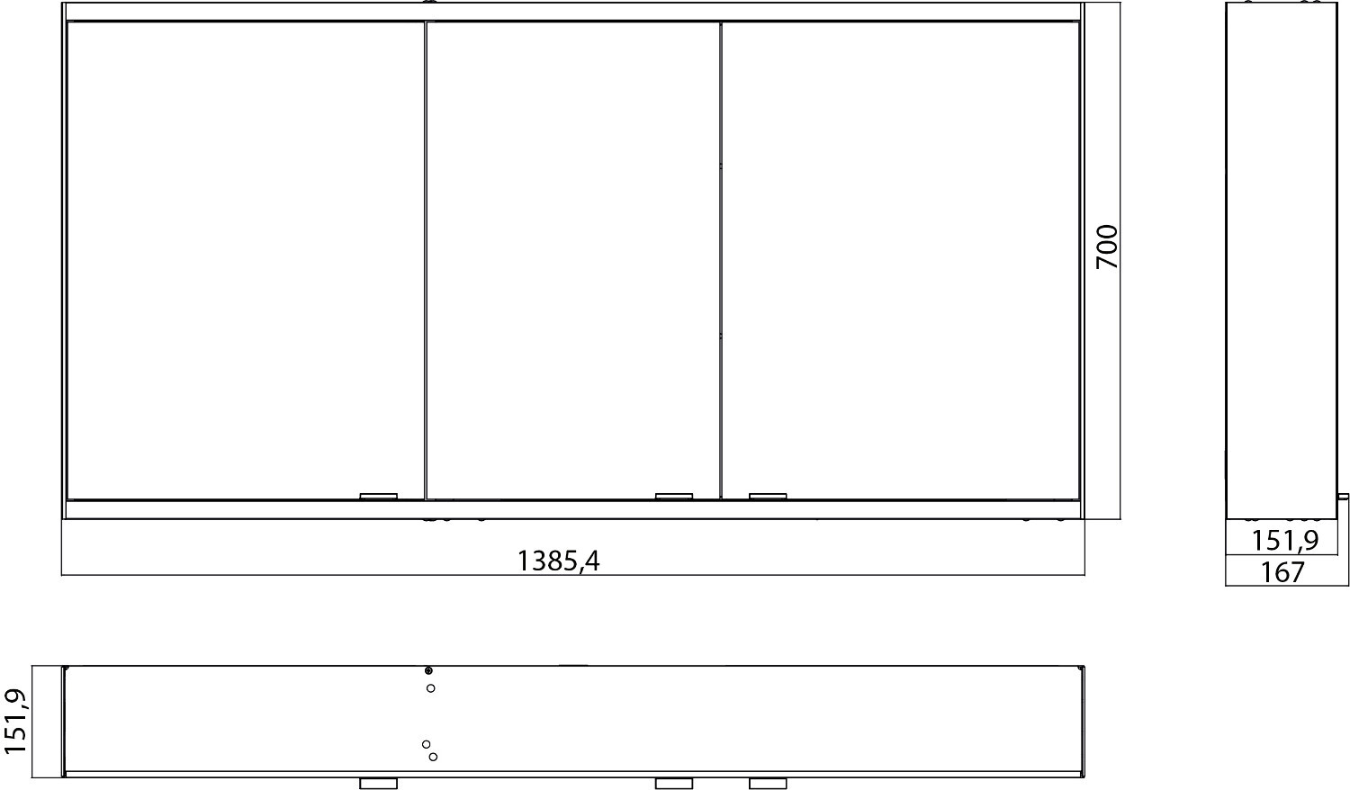 Spiegelkast Prime 2 Facelift opbouw 1400mm 3 deur Ip 20 EMCO