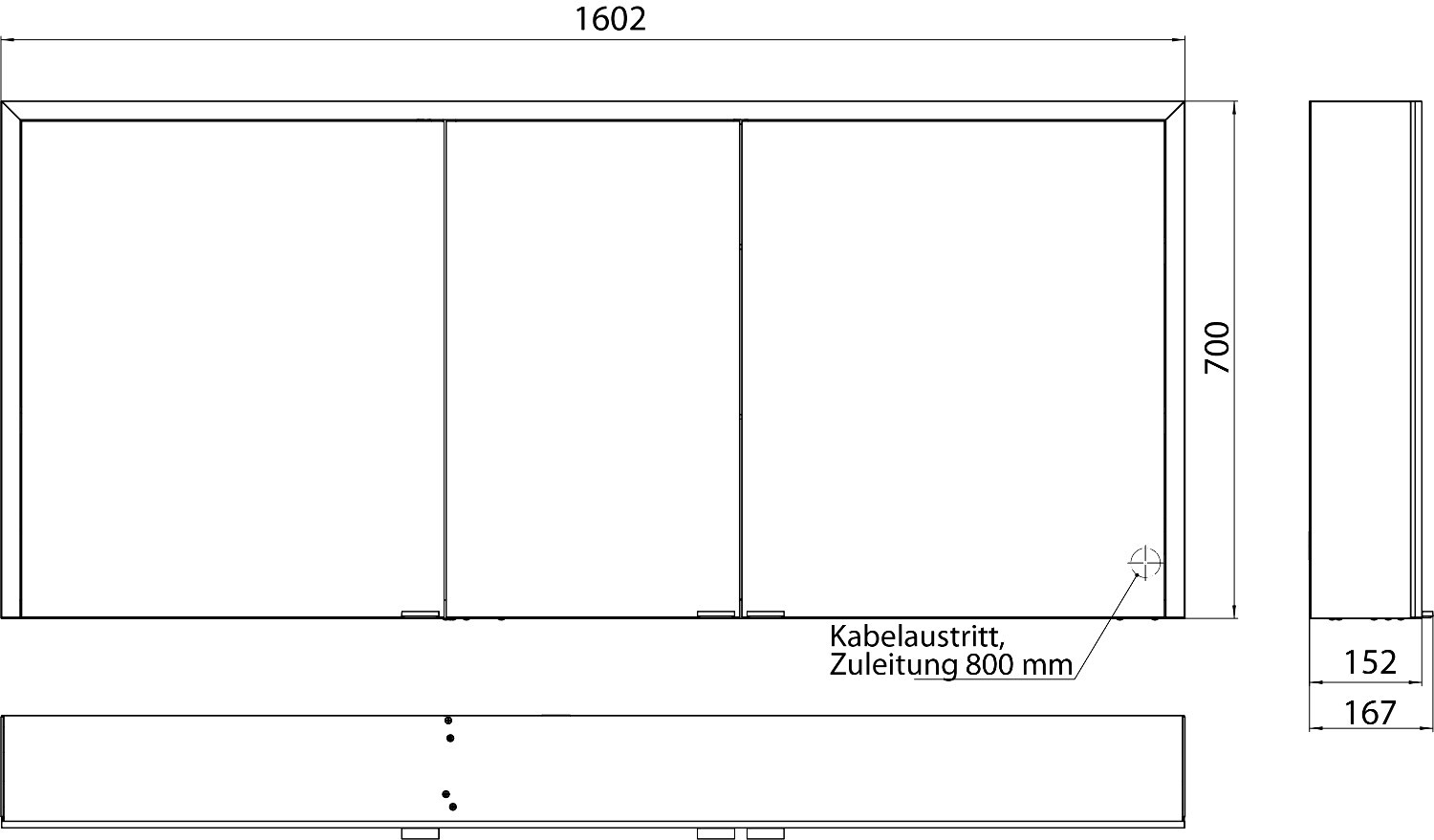 Led-Spiegelkast Prime 3 opbouw 1600mm 3 deur EMCO