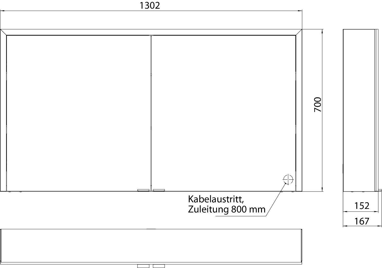 Led-Spiegelkast Prime 3 opbouw 1300mm 2 deur Zwart EMCO