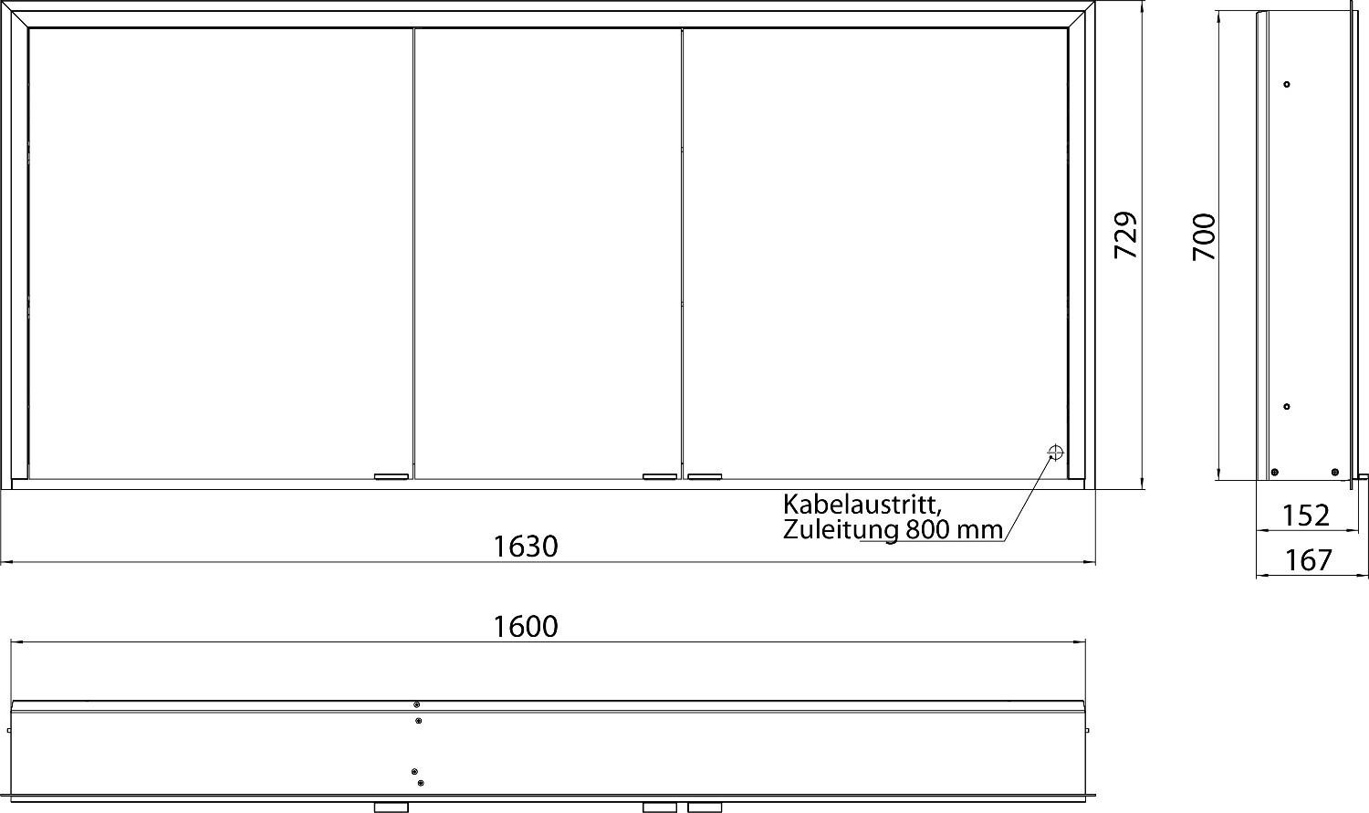 Led-Spiegelkast Prime 3 inbouw 1600mm 3 deur EMCO
