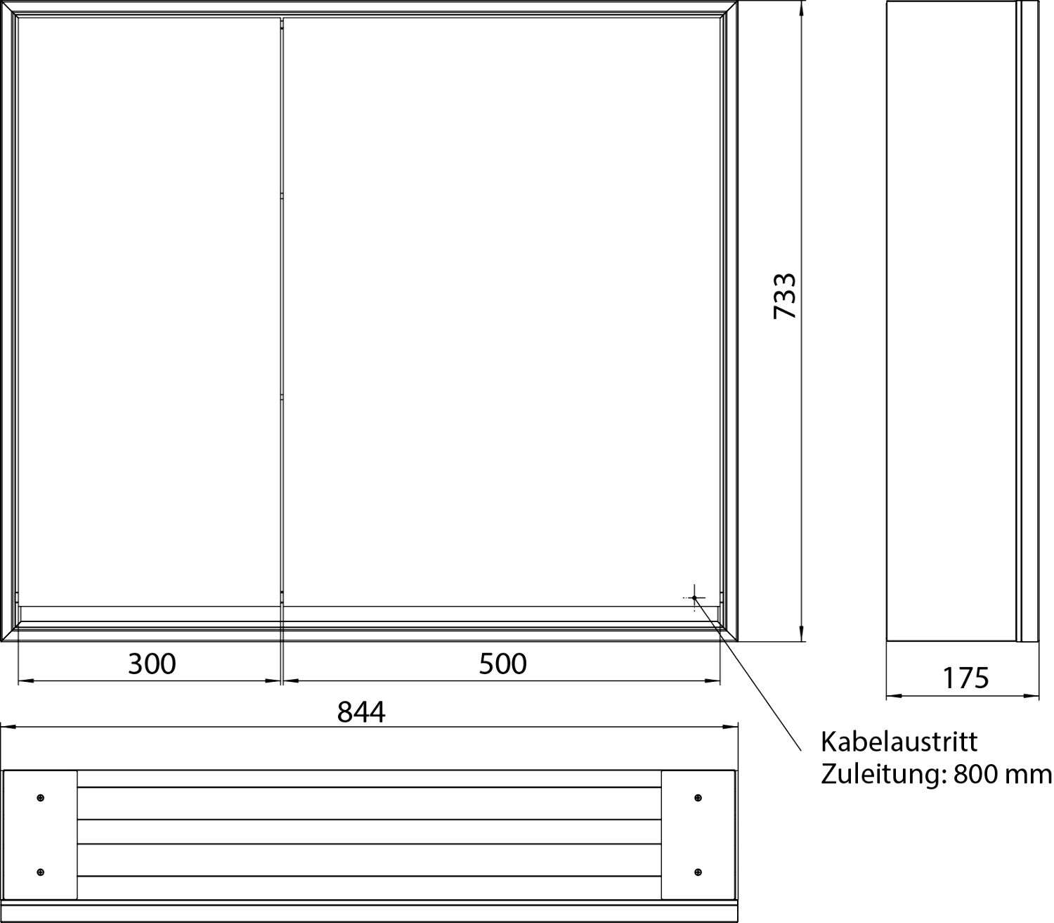 Spiegelkast Loft opbouw 800mm 2 deur Brede deur Re EMCO