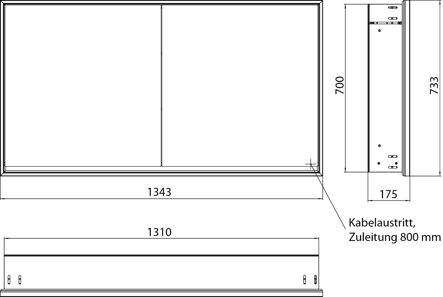 Spiegelkast Loft inbouw 1300mm 2 deur EMCO