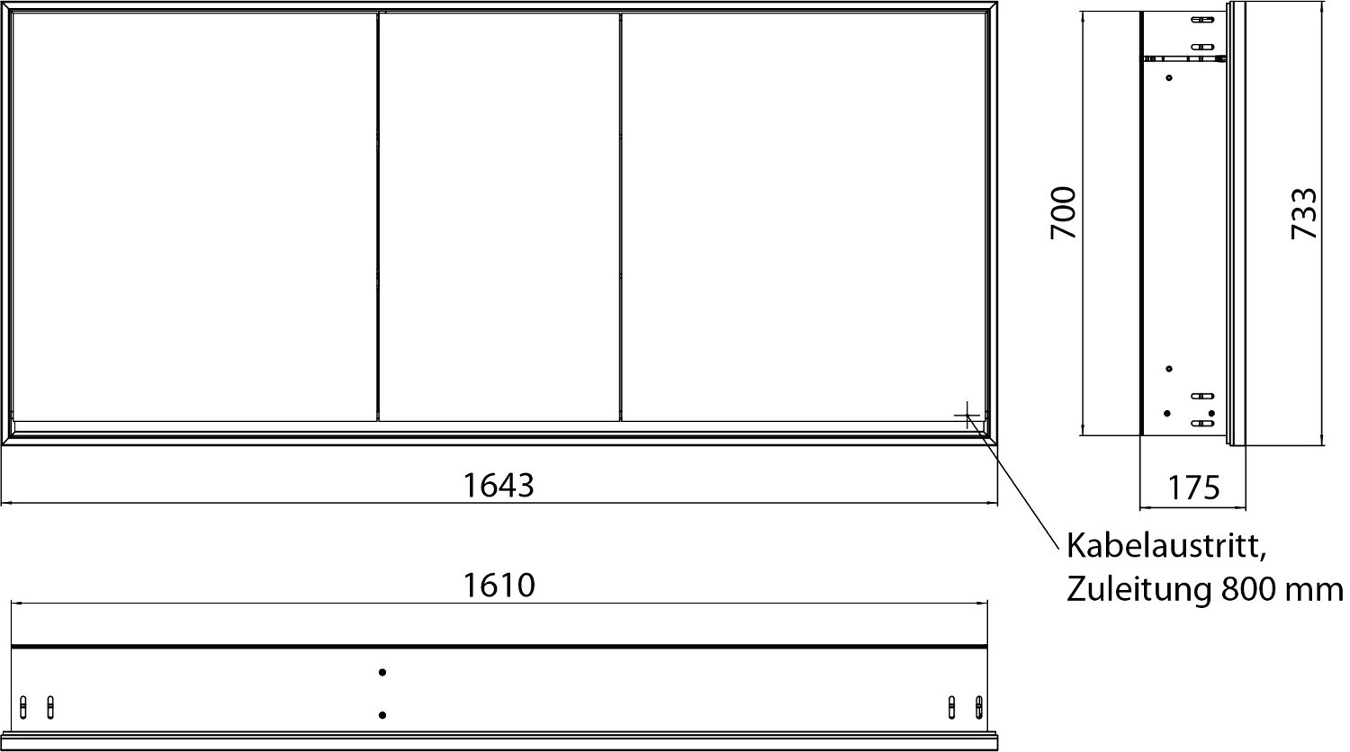 Led-Spiegelkast Loft inbouw 1600mm 3 deur EMCO