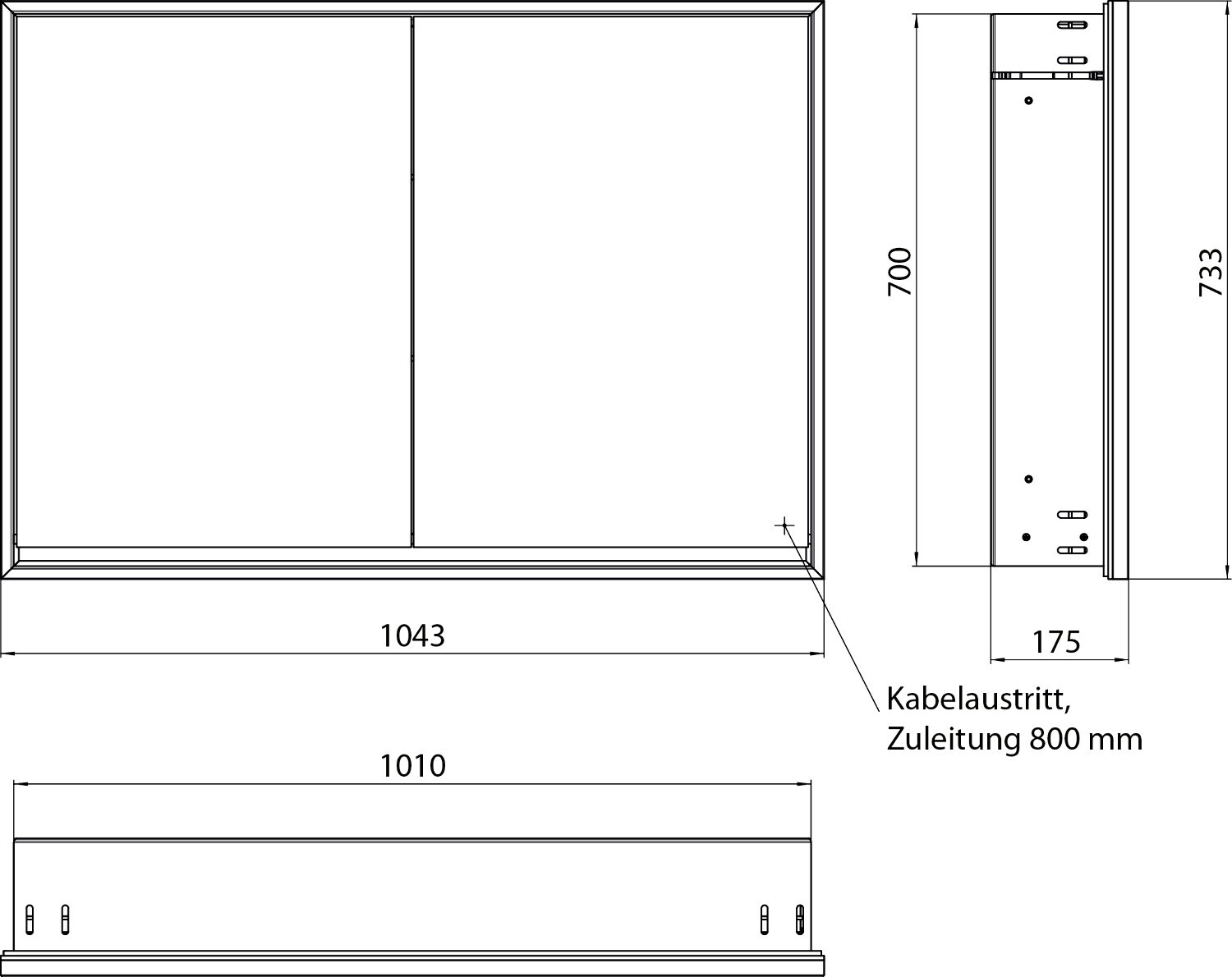 Led-Spiegelkast Loft inbouw 1000mm 2 deur Zwart EMCO