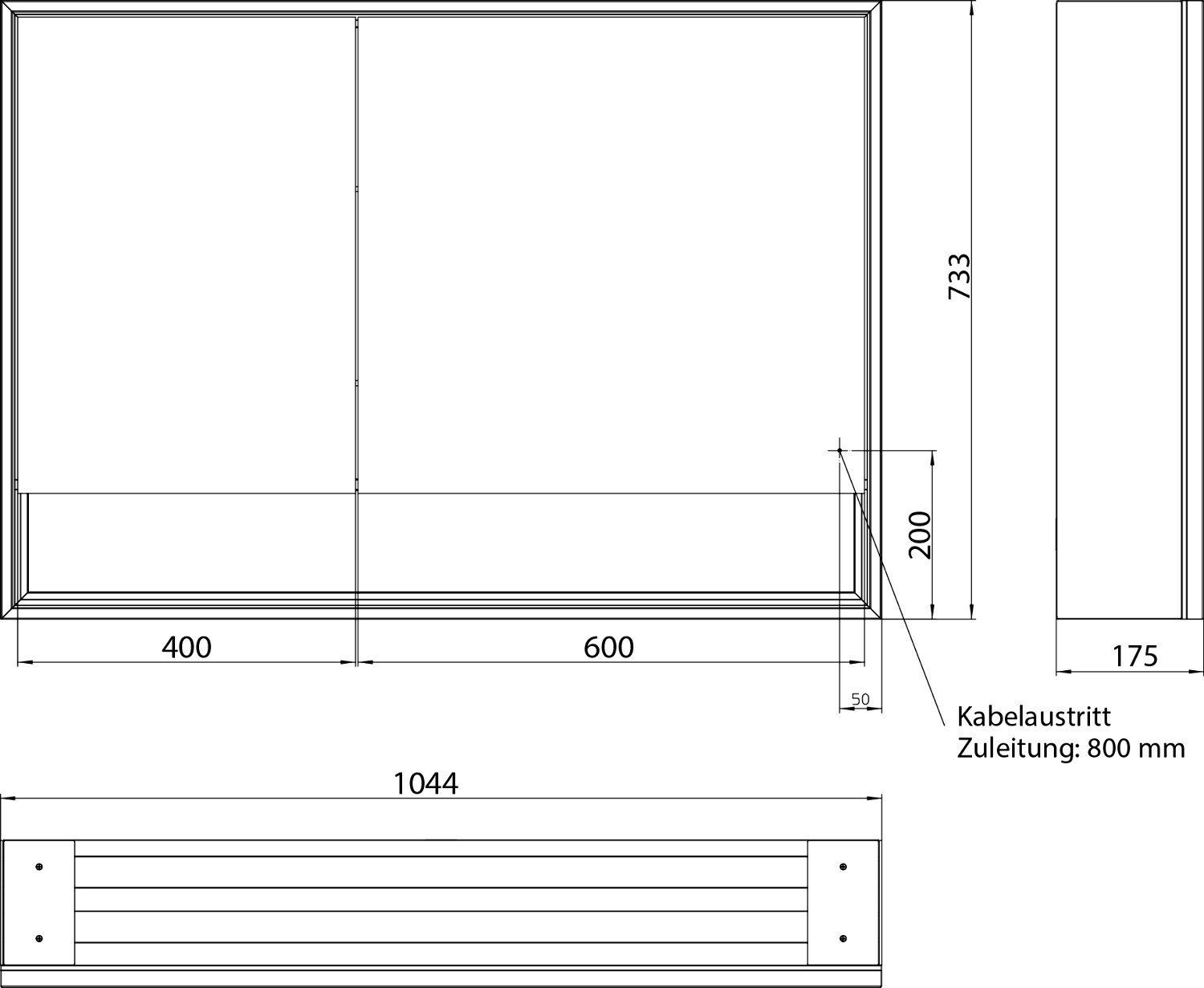Led-Spiegelkast Met Ondervak opbouw 1000mm Brede deur Re Zw EMCO