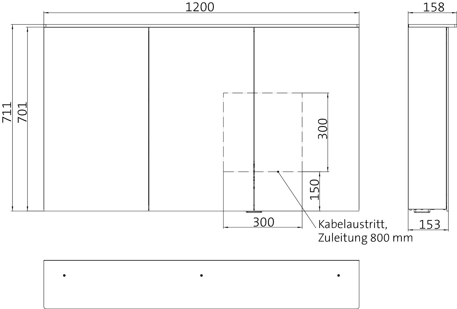 Pure2 design LED spiegelkast 1200mm 3 deuren opbouw alu EMCO