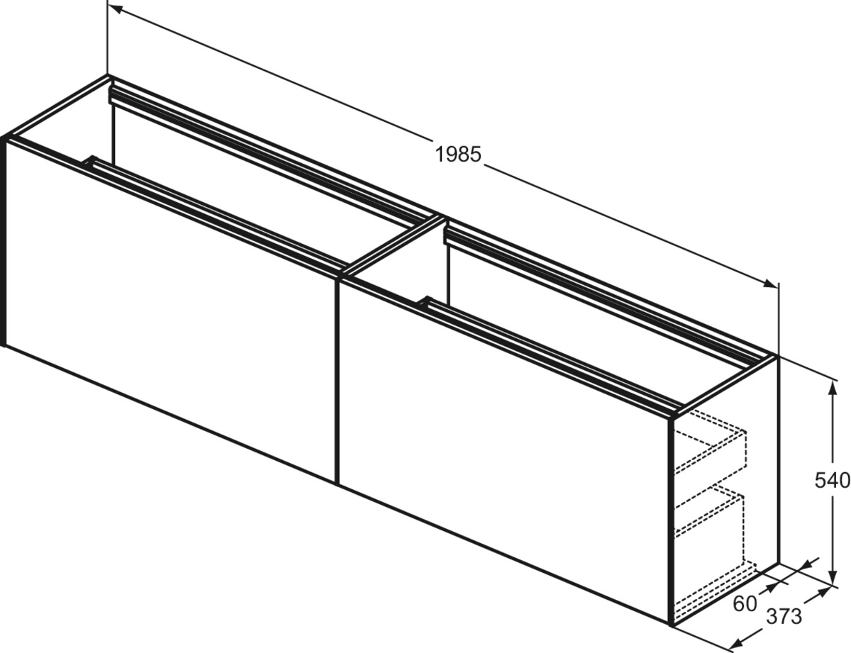 Conca wastafelmeubel 200x37x55cm 2 laden zonder afdekblad dark walnut Ideal Standard