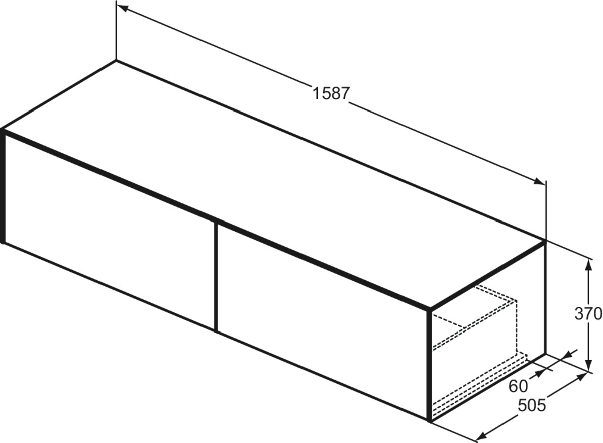 Conca wastafelmeubel 160x50x37cm 2 laden afdekblad zonder uitsnijding matt white Ideal Standard