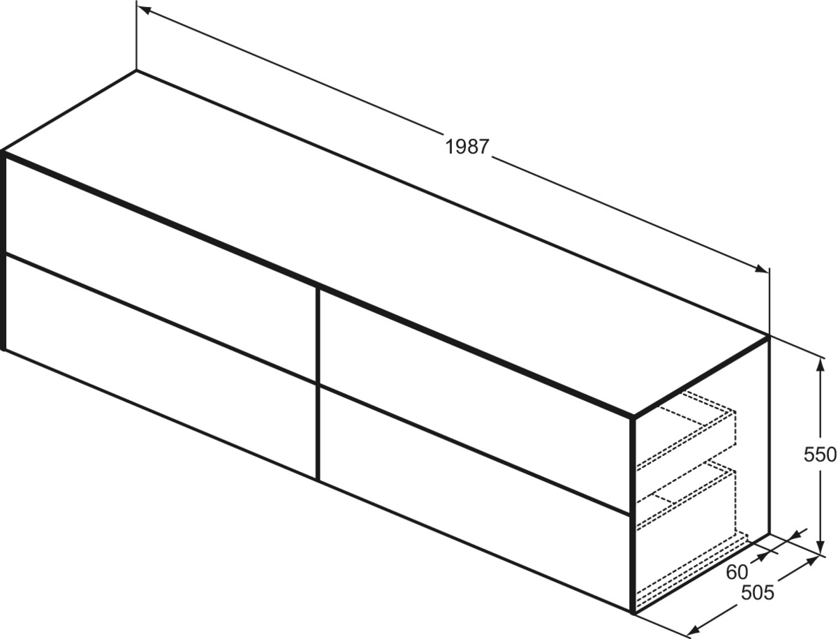Conca wastafelmeubel 200x50x55cm 4 laden afdekblad zonder uitsnijding mat antraciet Ideal Standard