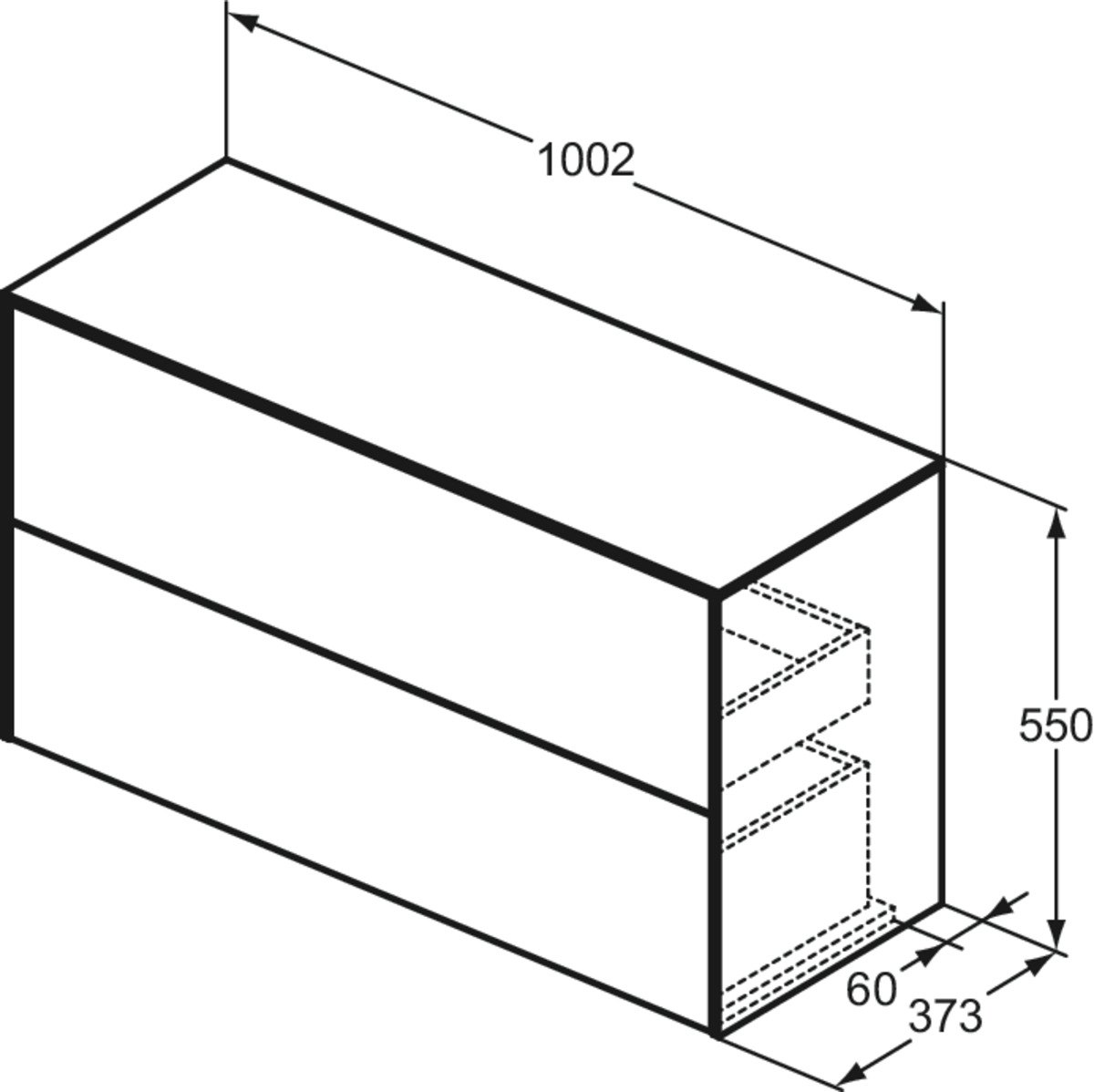 Conca wastafelmeubel 100x37x55cm 2 laden afdekblad zonder uitsnijding mat antraciet Ideal Standard