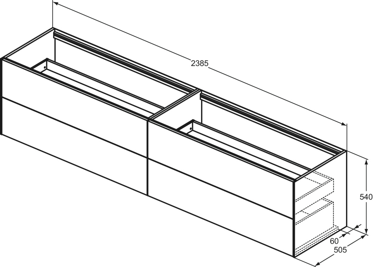 Conca wastafelmeubel 240x50x55cm 4 laden zonder afdekblad light oak Ideal Standard