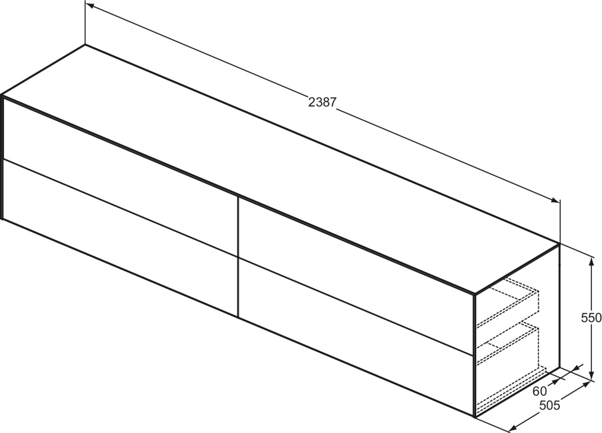 Conca wastafelmeubel 240x50x55cm 4 laden afdekblad zonder uitsnijding dark walnut Ideal Standard