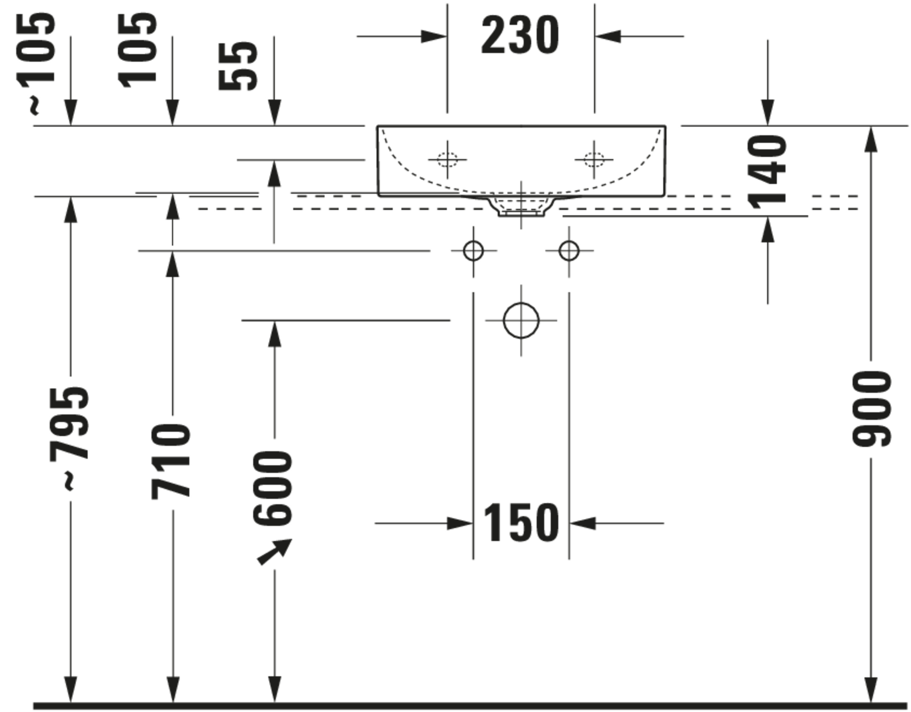 DURASQUARE #073245 fontein 450mm wit zonder kraangat geslepen onderzijde Duravit