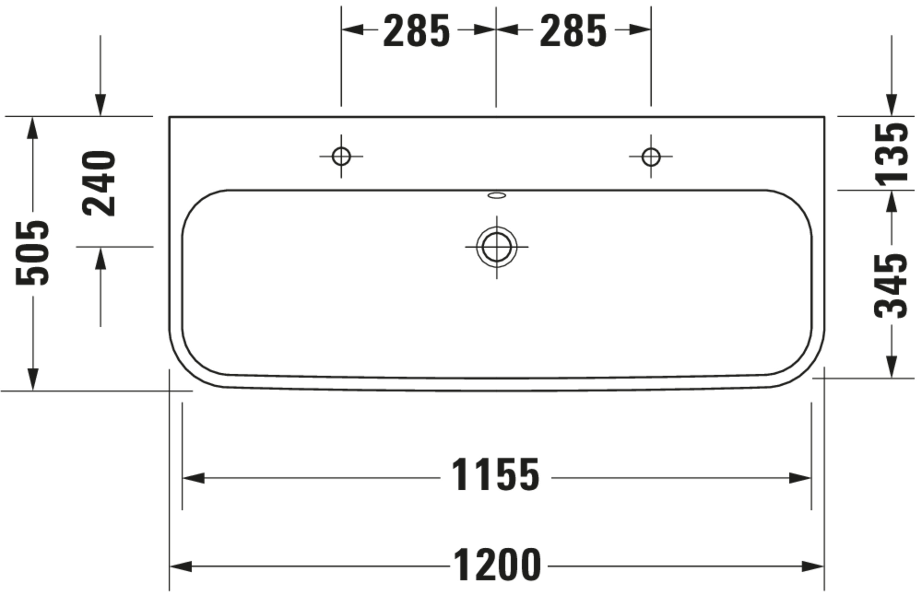 HAPPY D.2 #231812 wastafel 1200mm wit met 2 kraangaten met overloop Duravit