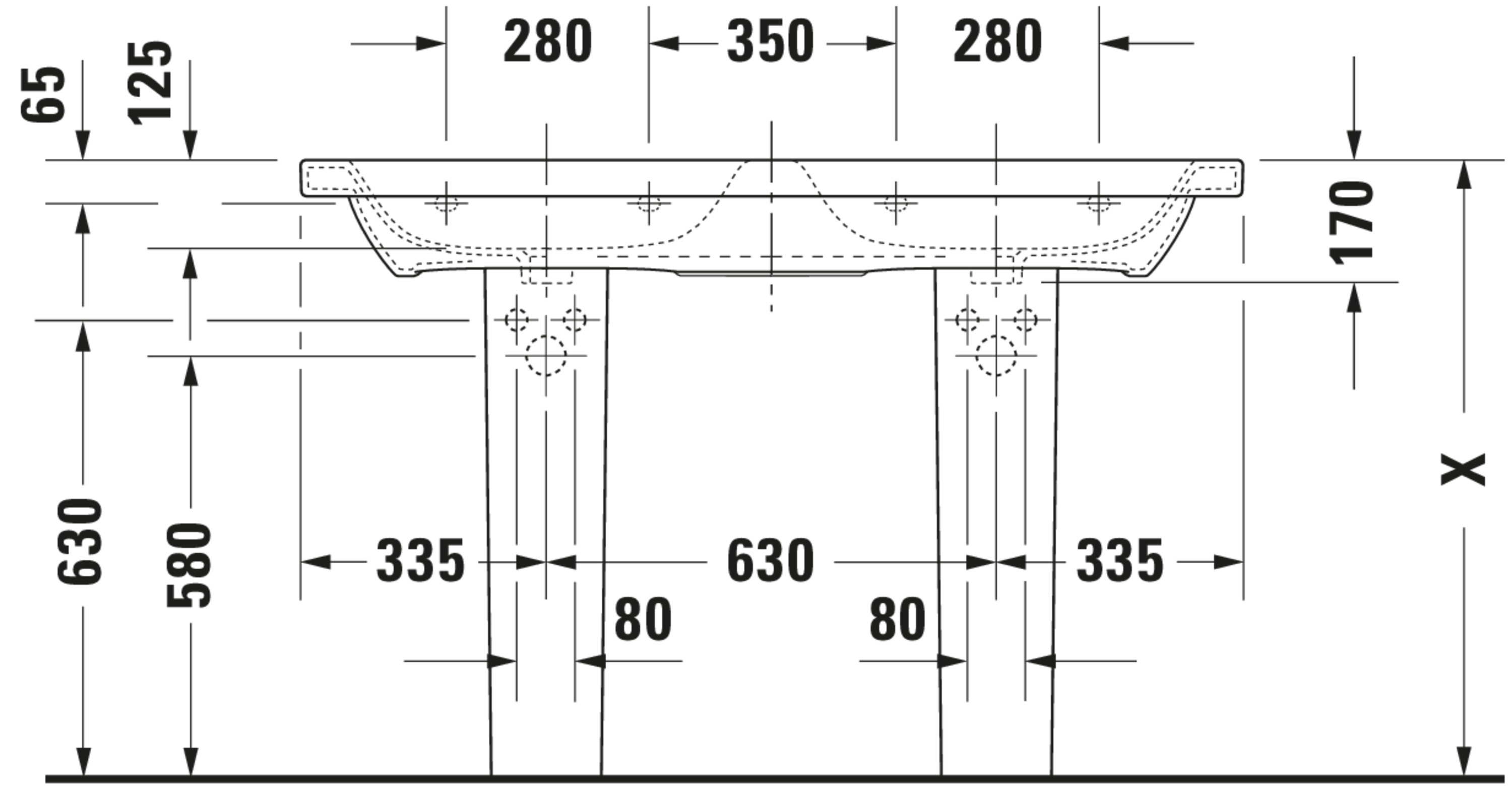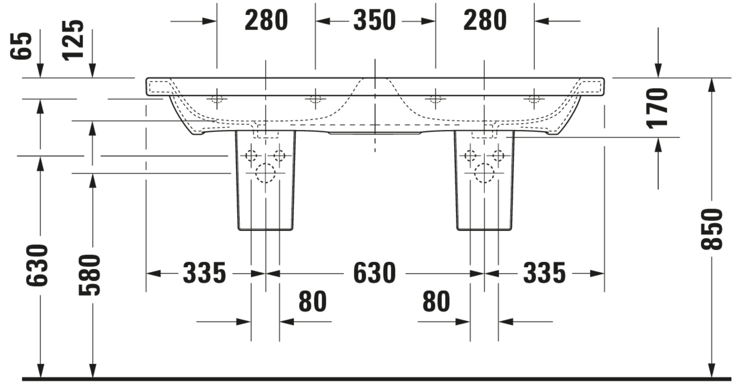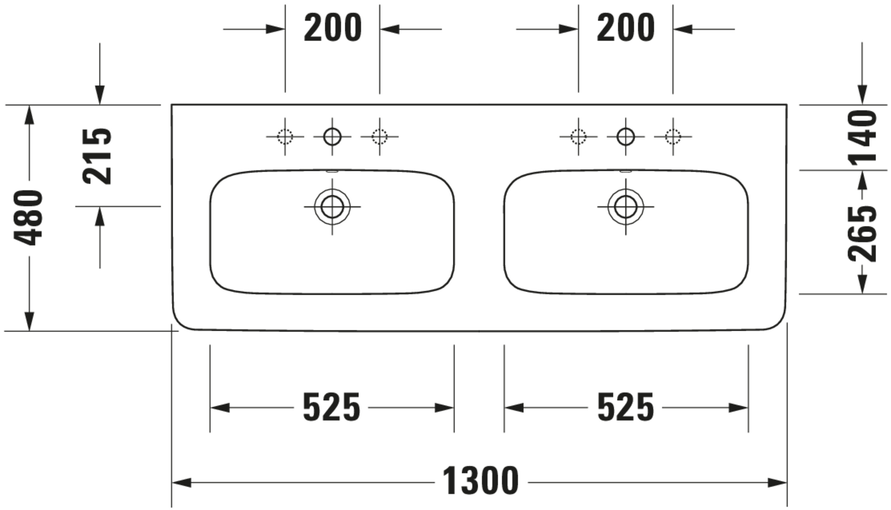 DURASTYLE #233813 dubbele wastafel 1300mm wit kraangaten per wasbak: 1 met overloop Duravit