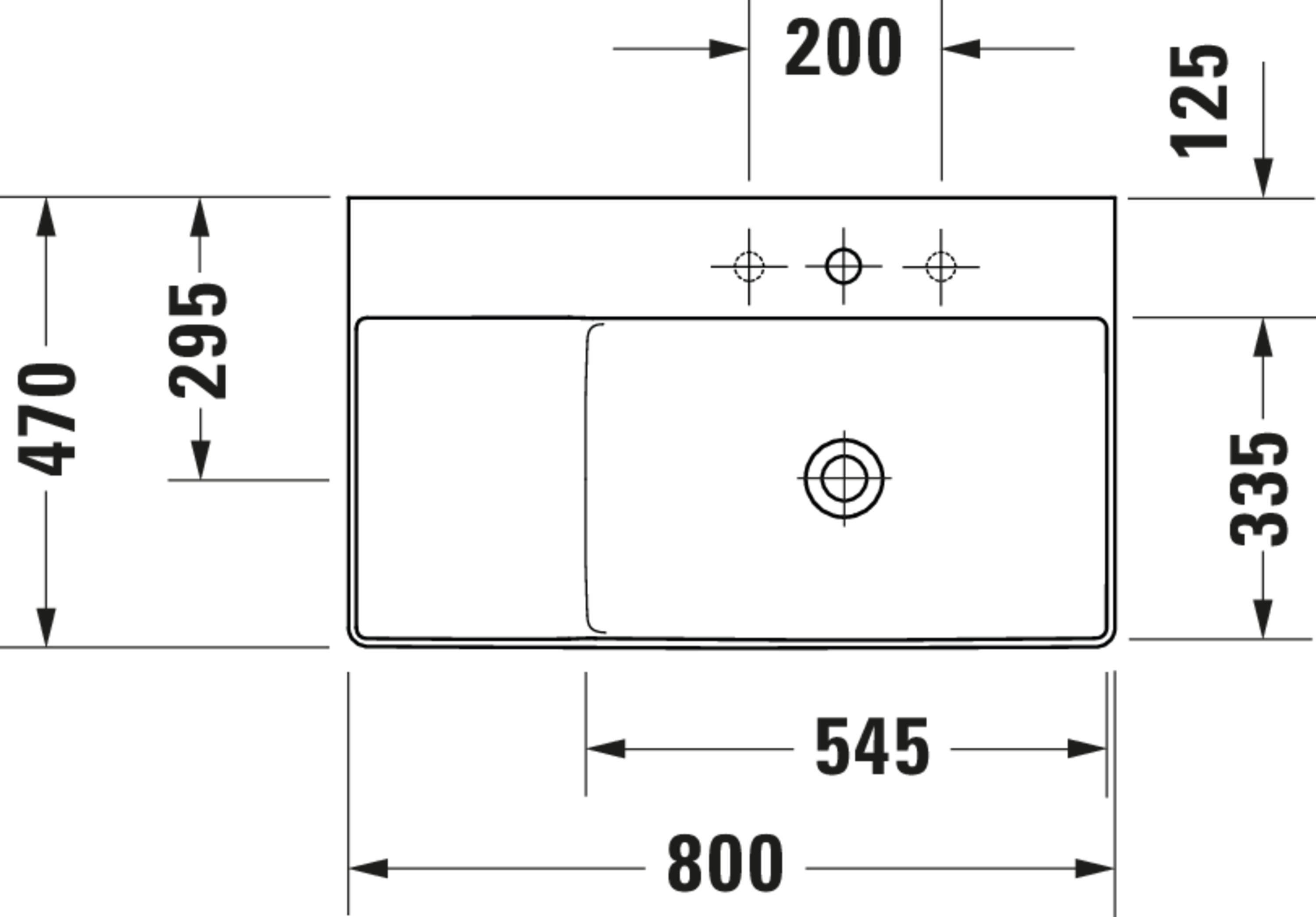 DURASQUARE #234980 wastafel rechts 800mm wit zonder kraangat Duravit
