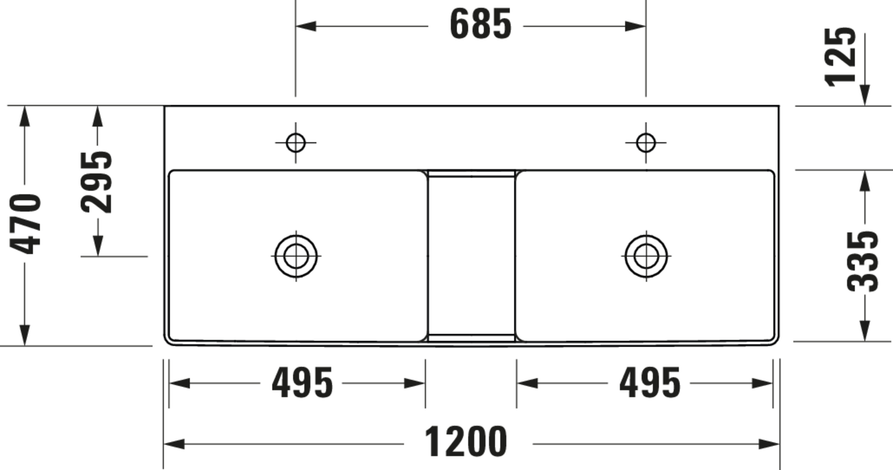 DURASQUARE #235312 dubbele wastafel 1200mm wit kraangaten per wasbak: 1 geslepen onderzijde Duravit