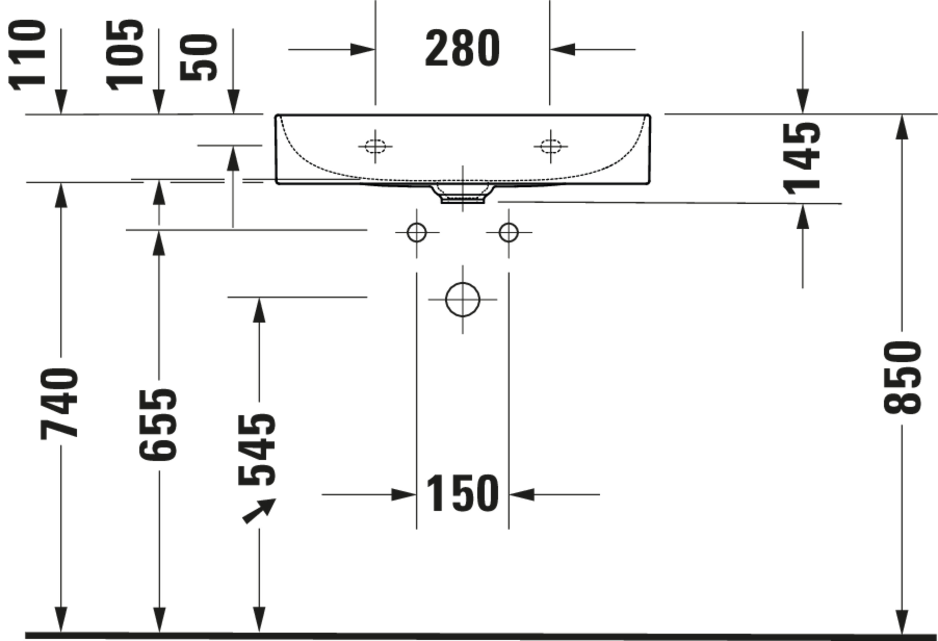 DURASQUARE #235660 wastafel 600mm wit met kraangat Duravit