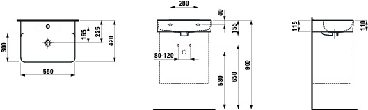 Meubelwastafel 550x420mm met kraangat met overloop wit Laufen