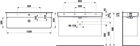 Meubelwastafel 1200x420mm met kraangat met overloop lcc-wit Laufen